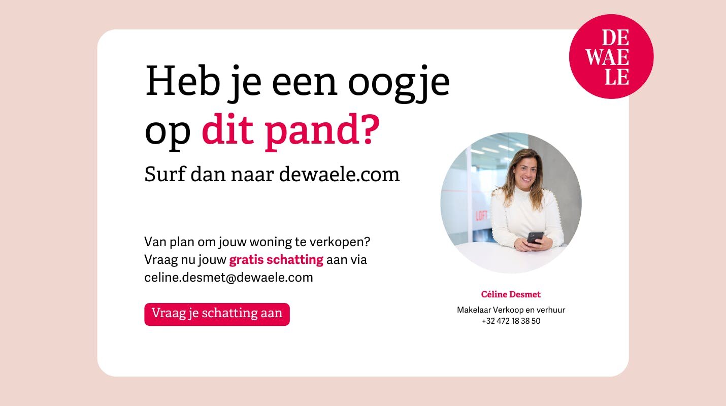 Ce bien est soumis à l'obligation de rénovation imposée par le gouvernement flamand pour les bâtiments résidentiels (sauf en cas de démolition dans les 5 ans suivant l'achat). Pour plus d'informations, veuillez consulter le site web de l'Agence flamande de l'Énergie et du Climat via https://www.vlaanderen.be/een-woning-kopen/renovatieverplichting-voor-residentiele-gebouwen