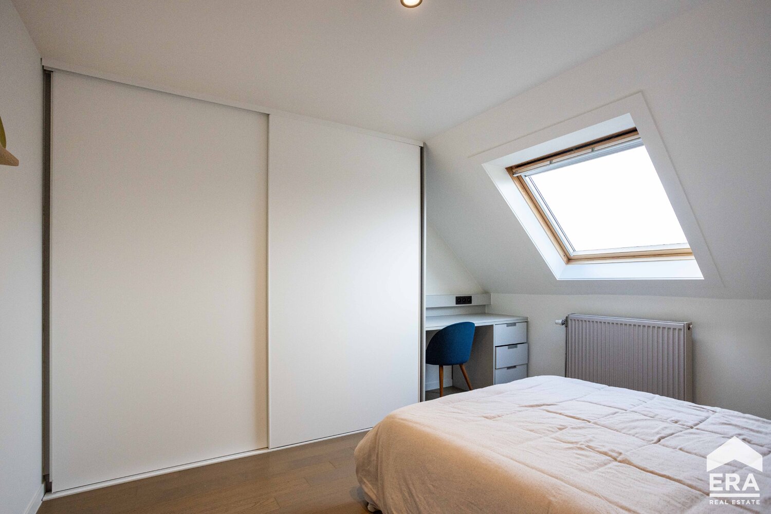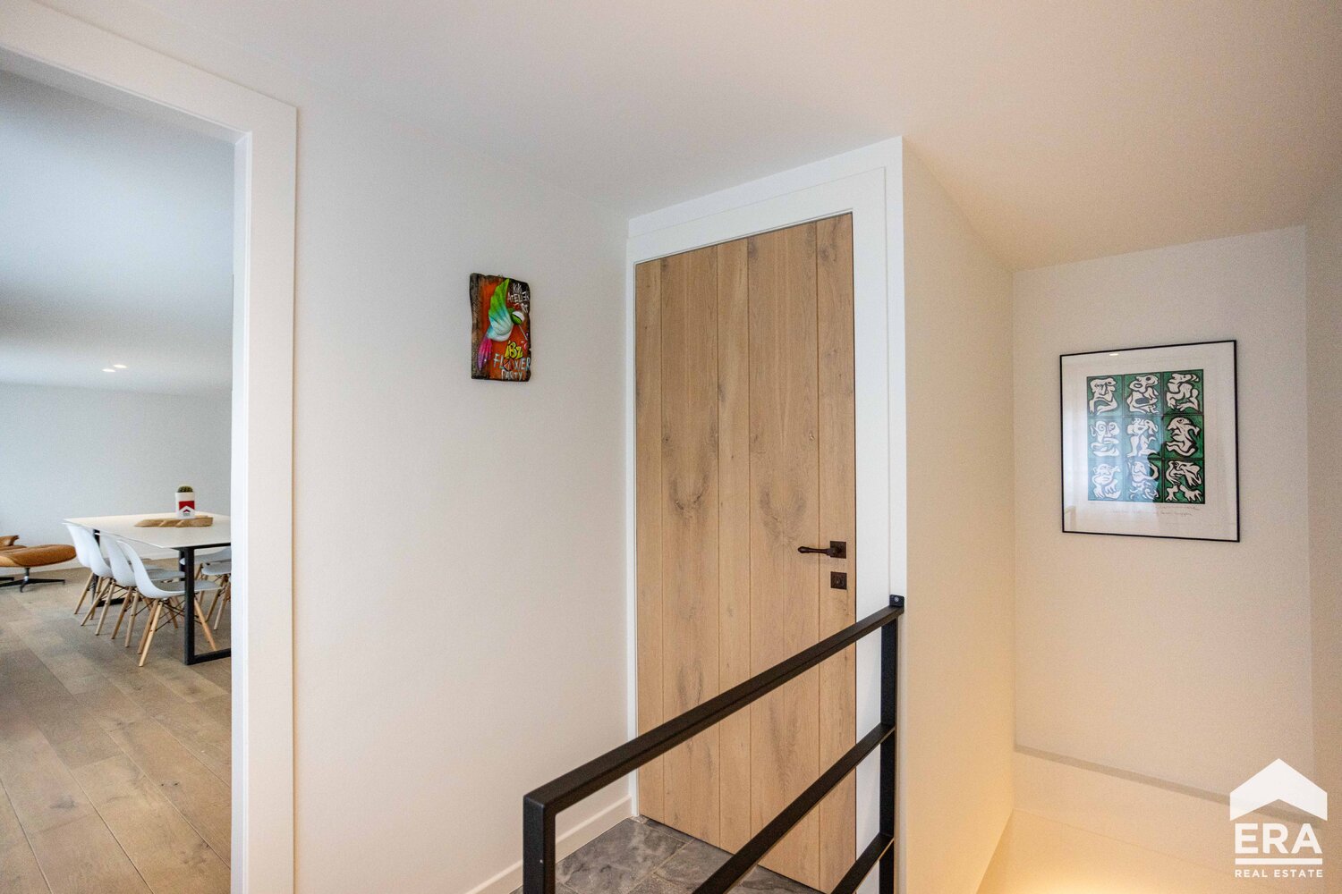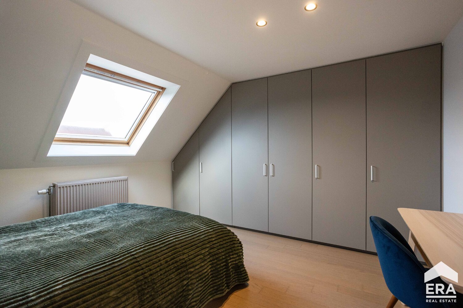 Op de eerste verdieping (82m²) bevindt zich het volledig private woongedeelte, dat bijzonder luxeus en tot in de puntjes afgewerkt is. Je geniet er in alle rust van een sfeervolle leefruimte (49m²), een volledig uitgeruste kwaliteitskeuken (16m²) en een tweede badkamer met inloopdouche én ligbad. Op de bovenste verdieping (83m²) vind je vier volwaardige slaapkamers (25, 14, 14, 14m²), waaronder één met dressing.