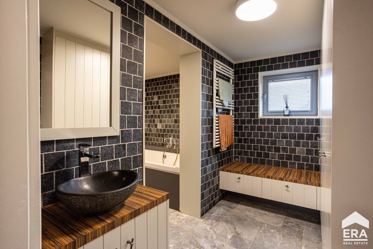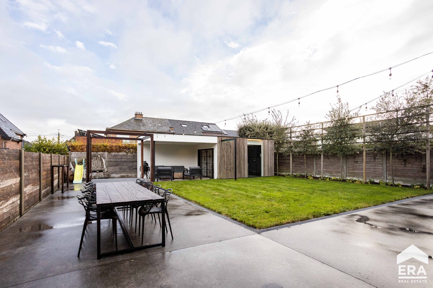 Buiten wacht een aangename tuin met overdekt terras en een nieuwe buitenkeuken. Dé ideale plek voor lange zomeravonden met vrienden en familie.