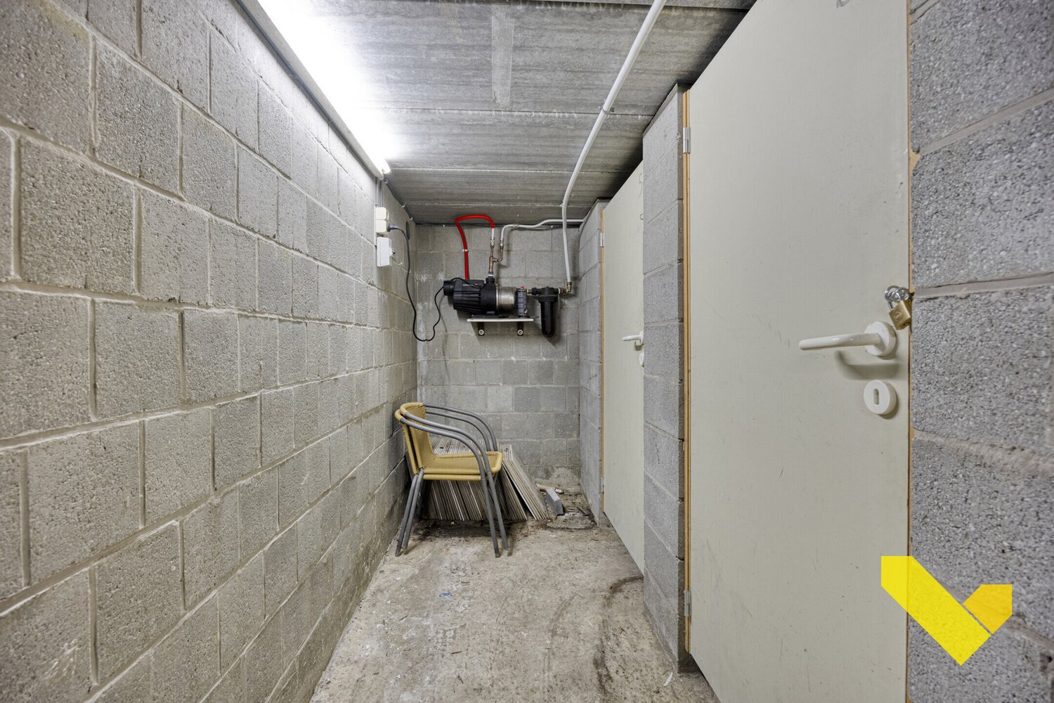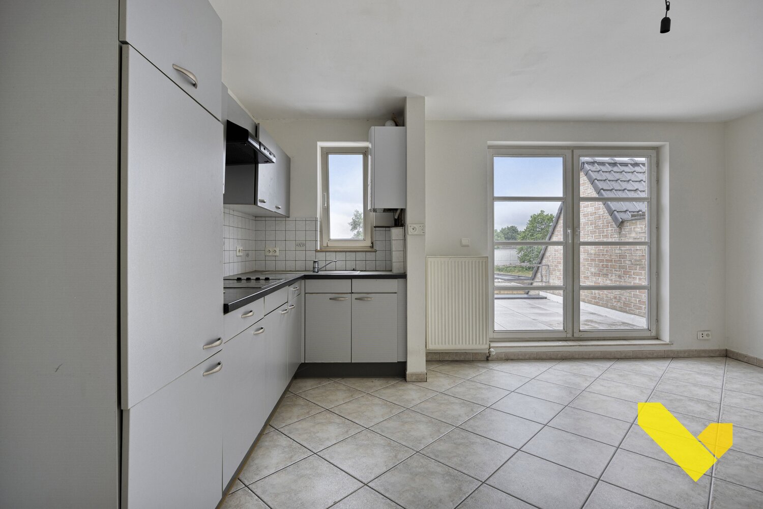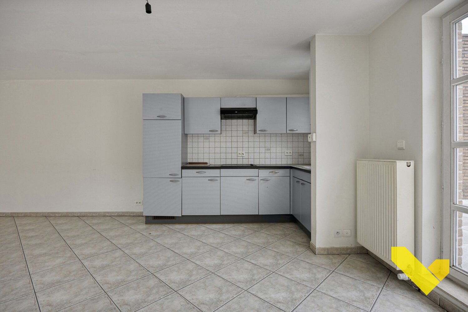 Dit appartement omvat een ruime woonkamer met aangenaam veel "natuurlijk" lichtinval en een verrassend ruim terras, een open keuken, één slaapkamer, badkamer met lavabo, inloopdouche en toilet. Dit appartement heeft ook een kelder en een gemeenschappelijke fietsruimte.