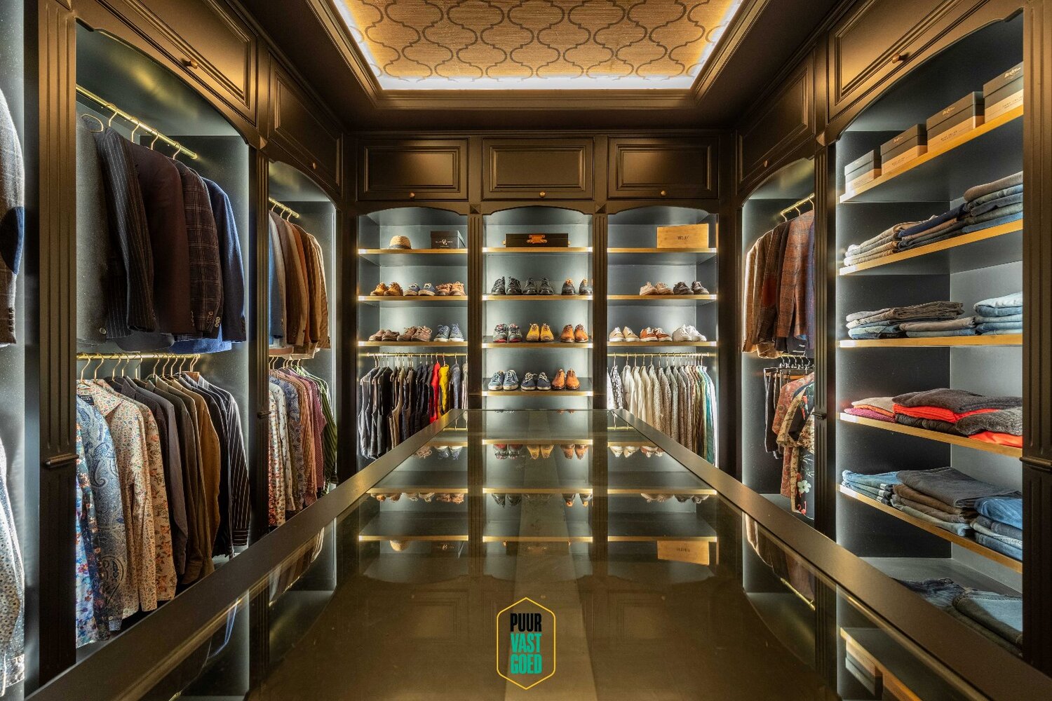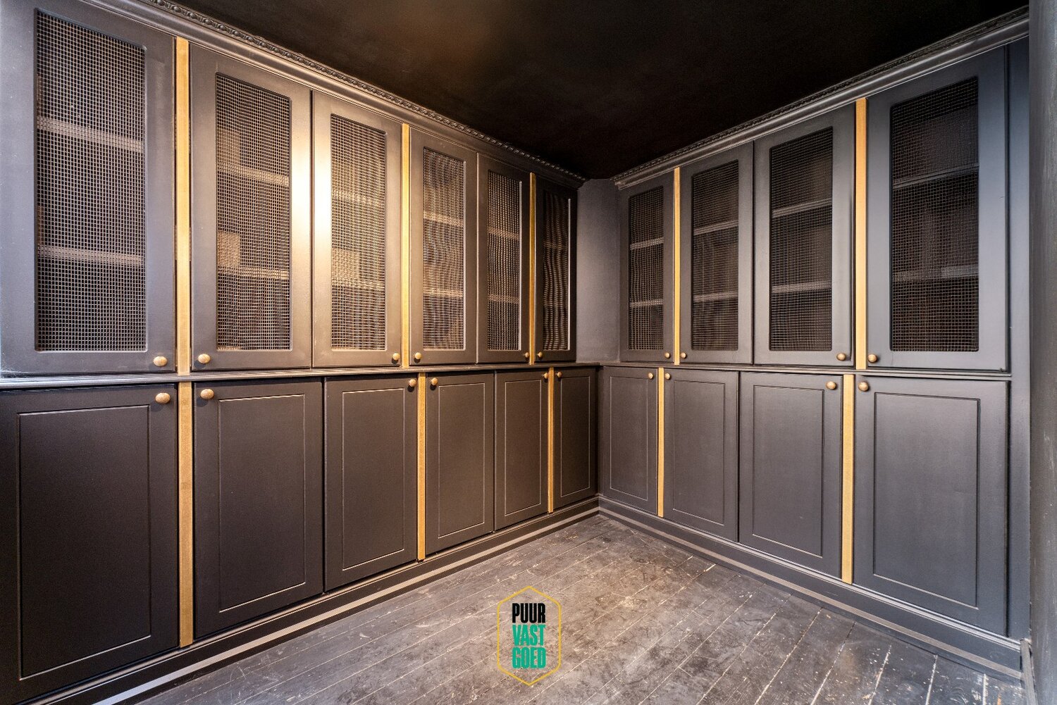 Ensuite, vous arrivez dans l'espace bien-être avec mur de fitness et sauna. À côté, vous avez le couloir qui mène à une grande cave à vin / débarras vers la salle technique "state of the art".
