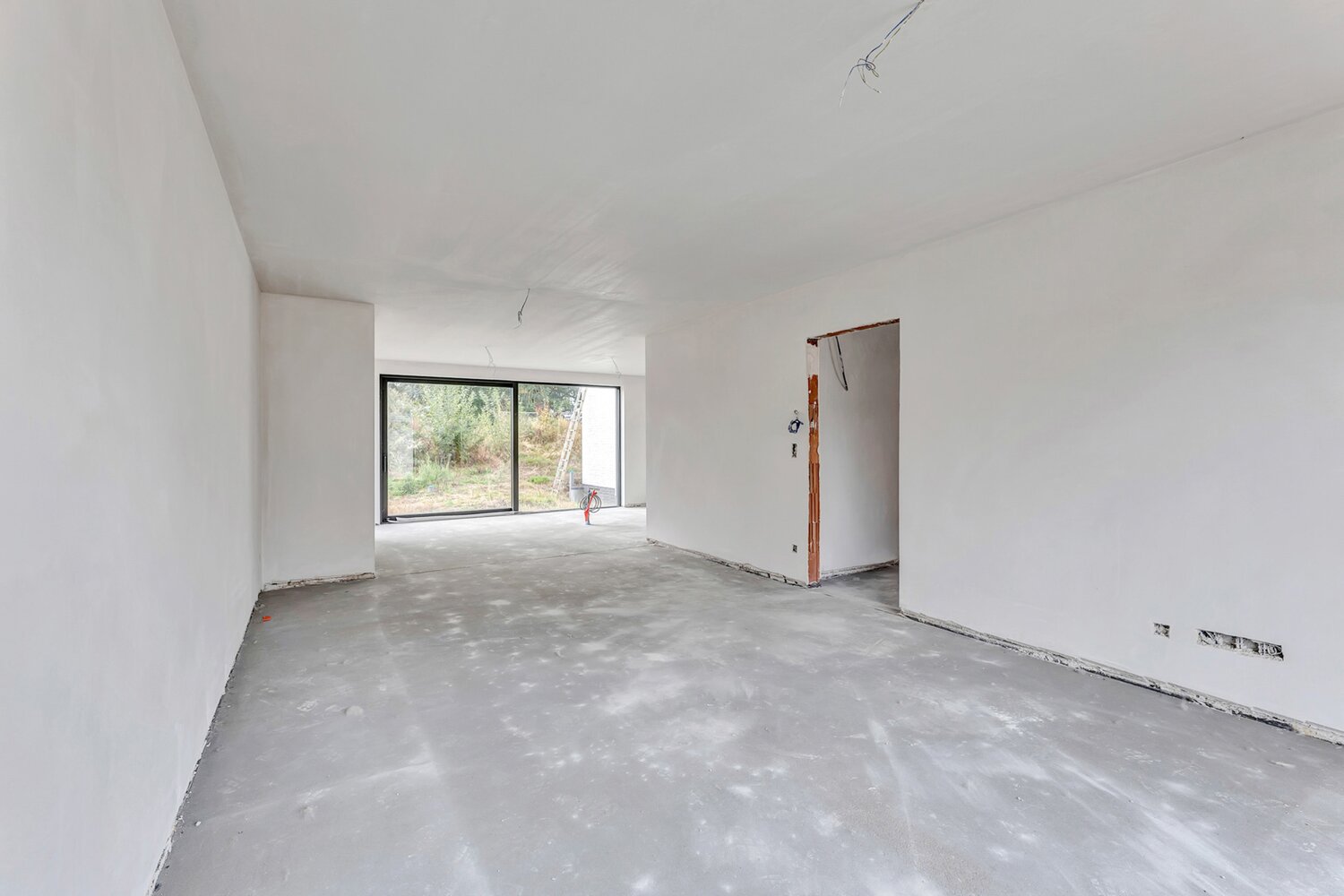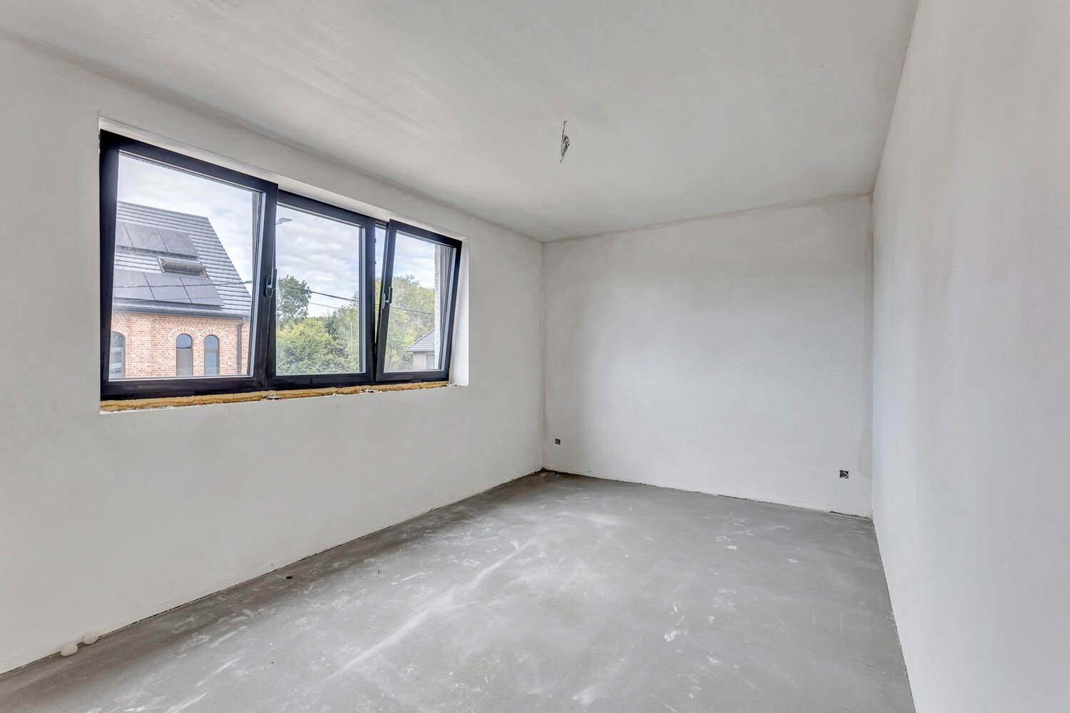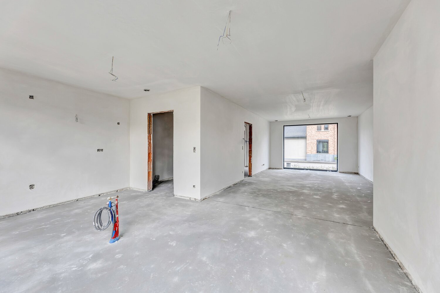 Voor meer info of een bezoek, bel 054 69 39 37 - Op een toplocatie in Denderhoutem bevindt zich deze nieuwbouwwoning met een moderne architectuur. De woning omvat op het gelijkvloers (83,2m²) een ruime inkomhal met een apart toilet, dat toegang geeft tot de eet- en leefruimte met open keuken, aansluitende bergruimte en overdekt terras. De eerste verdieping (73m²) omvat drie ruime slaapkamers, een badkamer voorzien van bad, douche, dubbele lavabo en toilet. Afwerking wordt volledig naar eigen smaak gekozen door de klant!