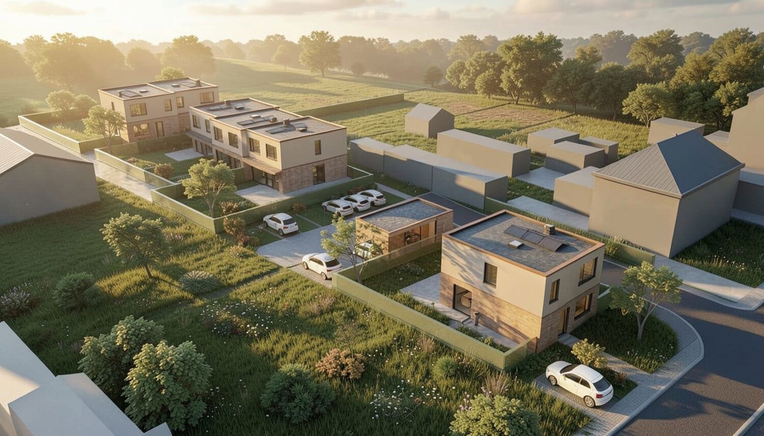 Chaque habitation offre d'excellentes performances énergétiques grâce au chauffage par le sol via une pompe à chaleur, des panneaux solaires et un système de ventilation D.