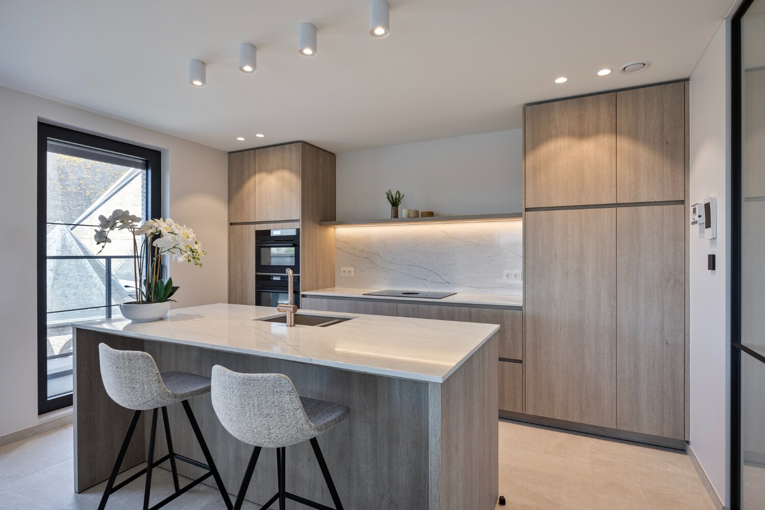 De moderne lijn van het gebouw en de keuze van materialen zorgen voor een hedendaagse en tijdloze uitstraling waarbij energiezuinigheid en kwaliteit hoog in het vaandel worden gedragen.