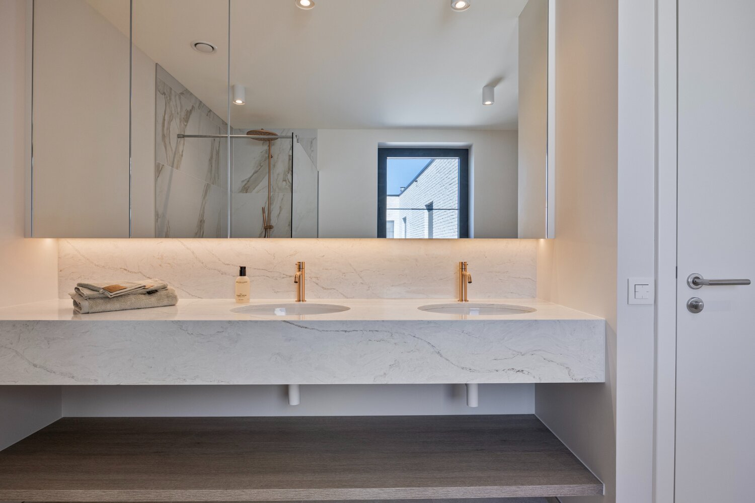 - Zeer ruime dubbele garages voorzien van privatieve elektrische laadpalen en toegankelijk via auto-fietslift;