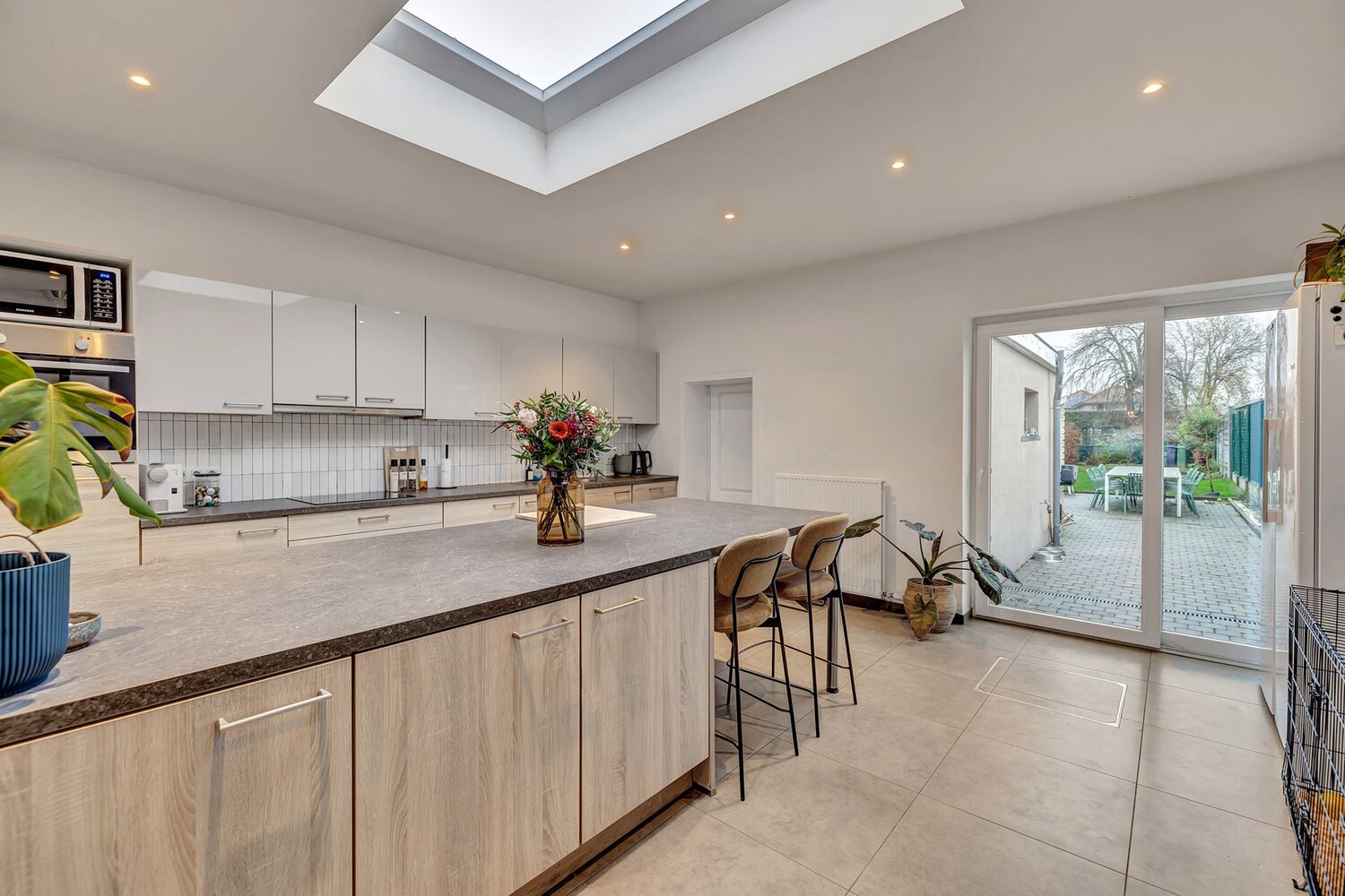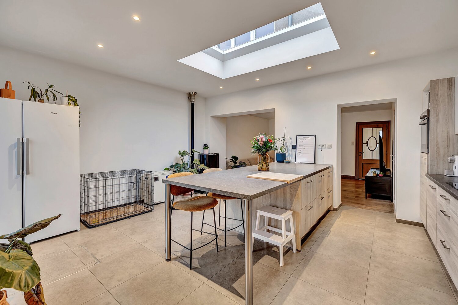Voor meer info of een bezoek, bel 053 59 49 34 - Op een gunstige locatie te Erembodegem, vinden we deze volledig gerenoveerde woning (1951) terug. De ligging is reeds de eerste troef van de woning. Verschillende faciliteiten bevinden (winkels, scholen, openbaar vervoer, ...) bevinden zich in de nabije omgeving. De E40 richting Brussel en Gent is vlot bereikbaar. De woning werd volledig gerenoveerd met kwalitatieve materialen in 2017. Buiten vinden we een ruim (zuidgericht) terras met aangelegde tuin terug. Ook is er voldoende parkeergelegenheid aanwezig in de straat. Op het gelijkvloers vinden we de inkomhal, een ruime lichtrijke woonkamer met open geïnstalleerde keuken (met eiland) en een berging, met toilet, terug. Verder vinden we op de eerste verdieping de masterbedroom terug en de volledig ingerichte badkamer met inloopdouche en ligbad. De zolder werd volledig ingericht en beschikt over twee volwaardige slaapkamers. Volledig gerenoveerd van vloer tot zolder - Gunstig EPC (B) - EK conform - Geen asbest - Zonnepanelen (16) - Laag verbruik/maand - CV gas - Radiatoren - Buitenschrijnwerk in PVC dubbele beglazing - Gunstige ligging - Kwalitatieve materialen.