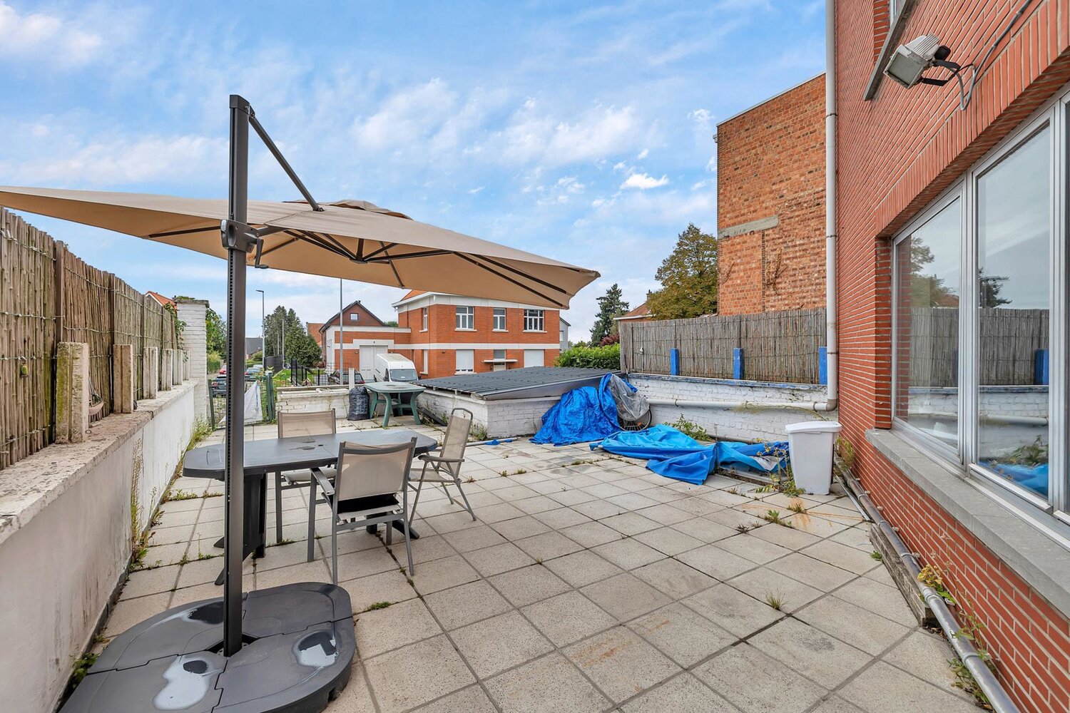 Voor meer info of een bezoek, bel 053 59 49 34 - Op een strategische locatie, op een boogscheut van zowel het centrum van Dilbeek als van Brussel, vinden we deze interessante (opbrengst)eigendom terug. Het commerciële gelijkvloers en het appartement op de eerste verdieping worden samen verkocht. De basisakte is momenteel in opmaak. Bij de aankoop zijn bovendien twee staanplaatsen inbegrepen. Het appartement beschikt over een ruime, lichtrijke leefruimte met aansluitend de deels geïnstalleerde keuken. Verder zijn er twee slaapkamers, een badkamer met douche en een apart toilet. De absolute troef is ongetwijfeld het prachtige, zeer ruime terras. Het commerciële gelijkvloers werd jarenlang uitgebaat als de bloeiende horecazaak “De Kapblok”, een restaurant met een sterke naamsbekendheid en uitstekende reputatie in Dilbeek en omstreken. In de achterliggende Kaudenaardestraat zijn er bovendien gratis openbare parkeerplaatsen beschikbaar. Het handelsgelijkvloers omvat een ruime zaal, een industriële keuken, aparte toiletten en een vestiaire. Via de achterzijde van het gebouw (Kaudenaardestraat) is zowel de handelsruimte als het appartement toegankelijk. Daarnaast is er een grote kelder, die eveneens bereikbaar is via de parking, ideaal voor leveranciers. Dankzij de grote raampartijen langs de Ninoofsesteenweg geniet het handelsgelijkvloers van een uitstekende visibiliteit. Deze topligging, met dagelijks veel passage richting Brussel en Ninove, maakt dit pand bijzonder aantrekkelijk. Gunstig EPC voor appartement (EPC B) als handelsruimte (EPC D - renovatieplicht) - Geen asbest in app - Geen hoge maandelijkse kosten - Aparte tellers