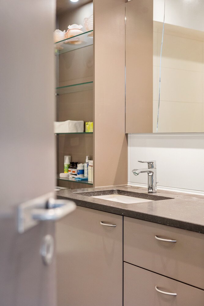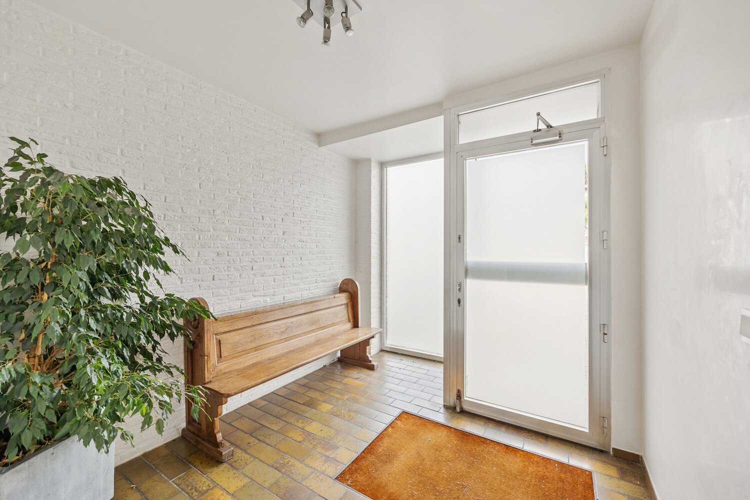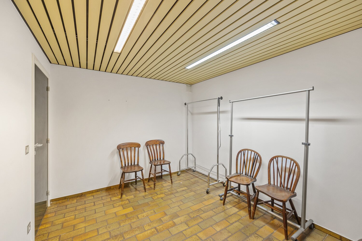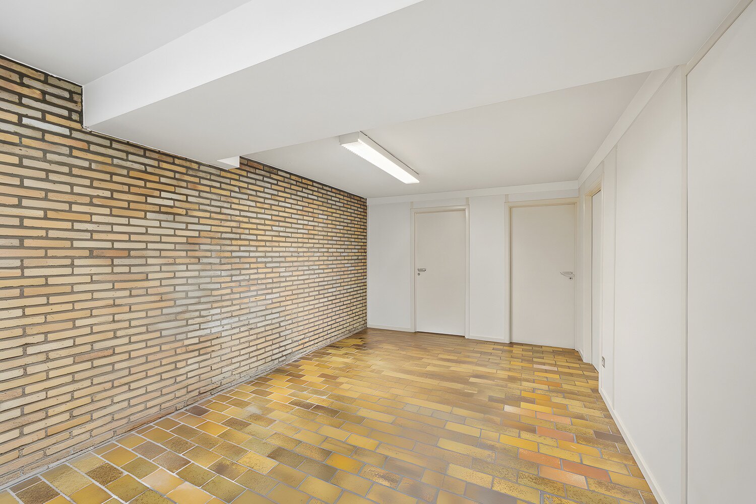 U betreedt de woning via de inkomhal, die toegang geeft tot de inpandige garage en meerdere kamers. Het gelijkvloers werd jarenlang gebruikt als tandartsenpraktijk en kan opnieuw perfect dienstdoen voor wie wonen en werken wil combineren.