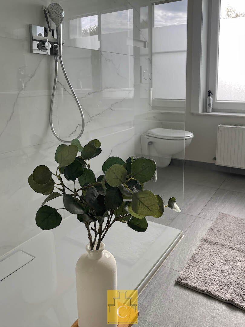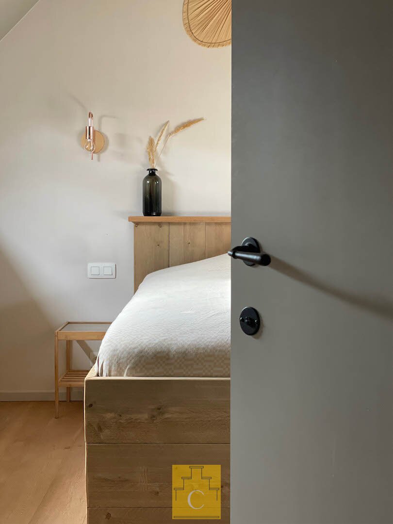 De tweede verdieping omvat twee ruime slaapkamers, dressing en een badkamer met inloopdouche, toilet, dubbele lavabo in meubel en spiegelkast.