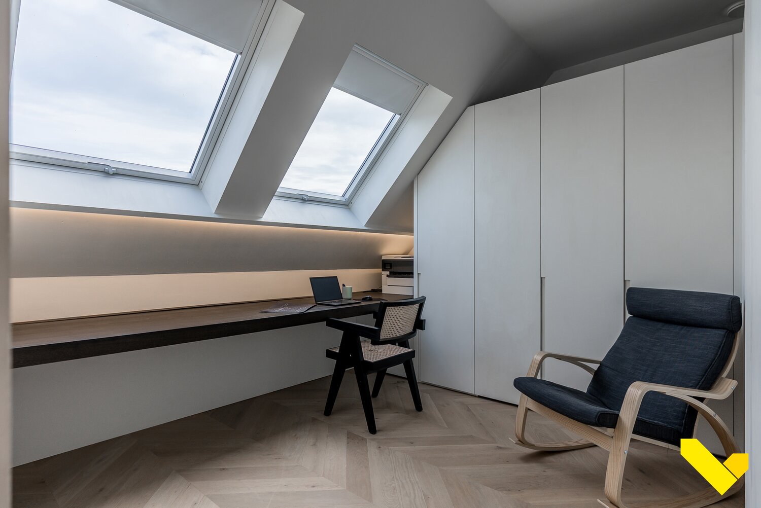 Als toetje nog een zolderruimte en uiteraard met ingemaakte kasten en plaats voor de hobby's.