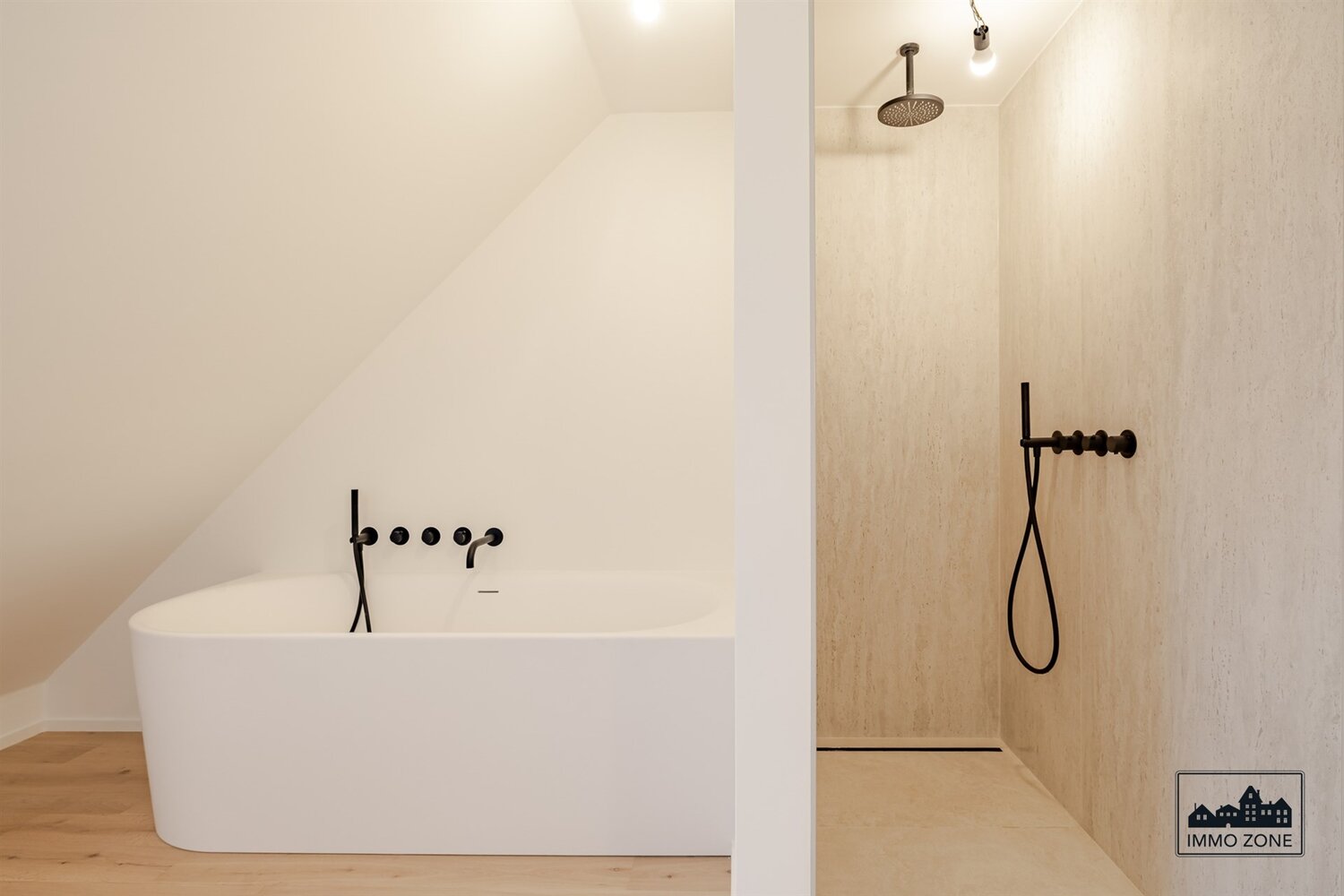 Op de eerste verdieping bevinden zich 3 ruime slaapkamers, een apart toilet en een badkamer met ligbad en inloopdouche, volledig afgewerkt met kwaliteitsvolle materialen. De vaste trap leidt naar een volledig geïsoleerde zolder die kan worden ingericht als extra slaapkamer, bureau of hobbyruimte.