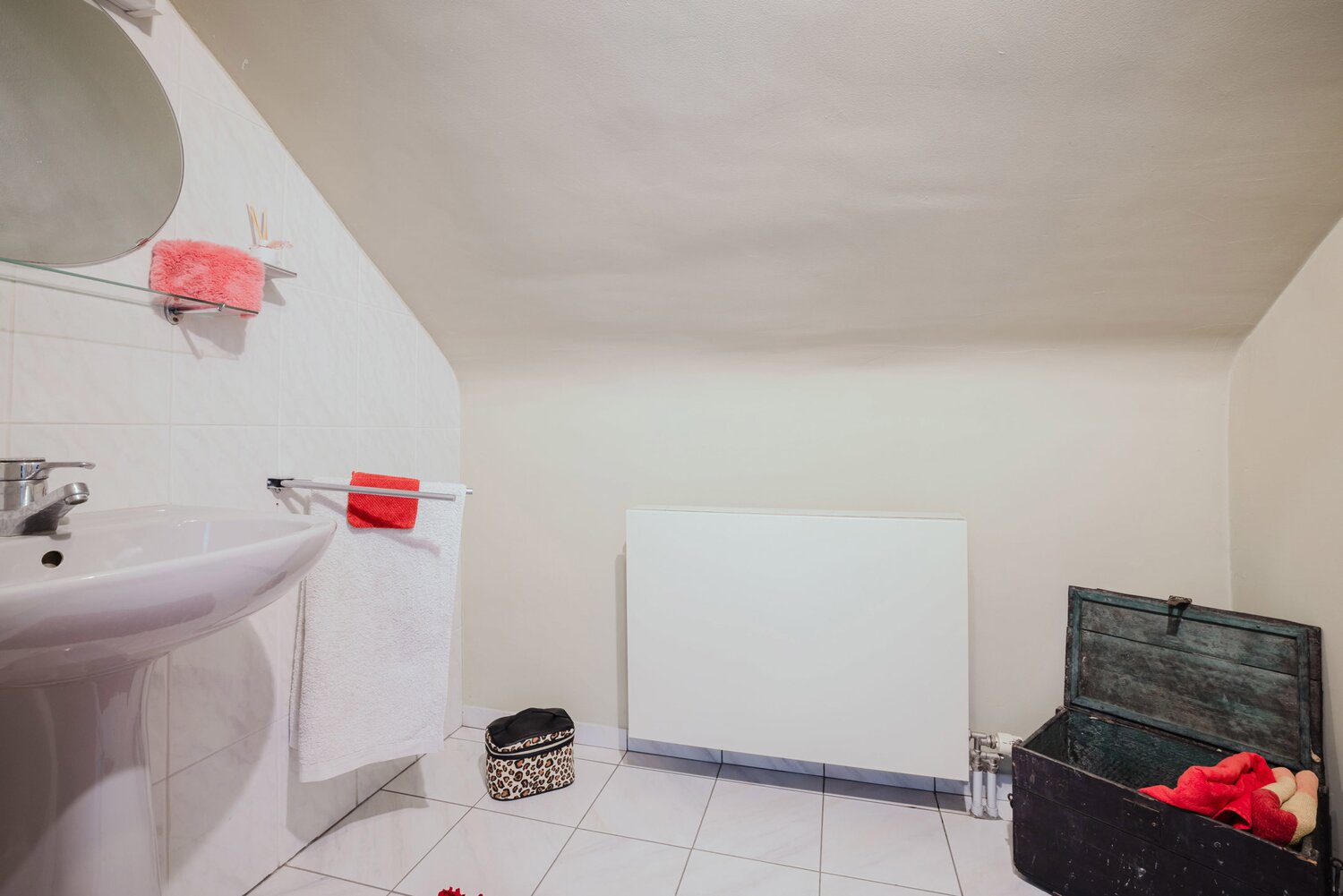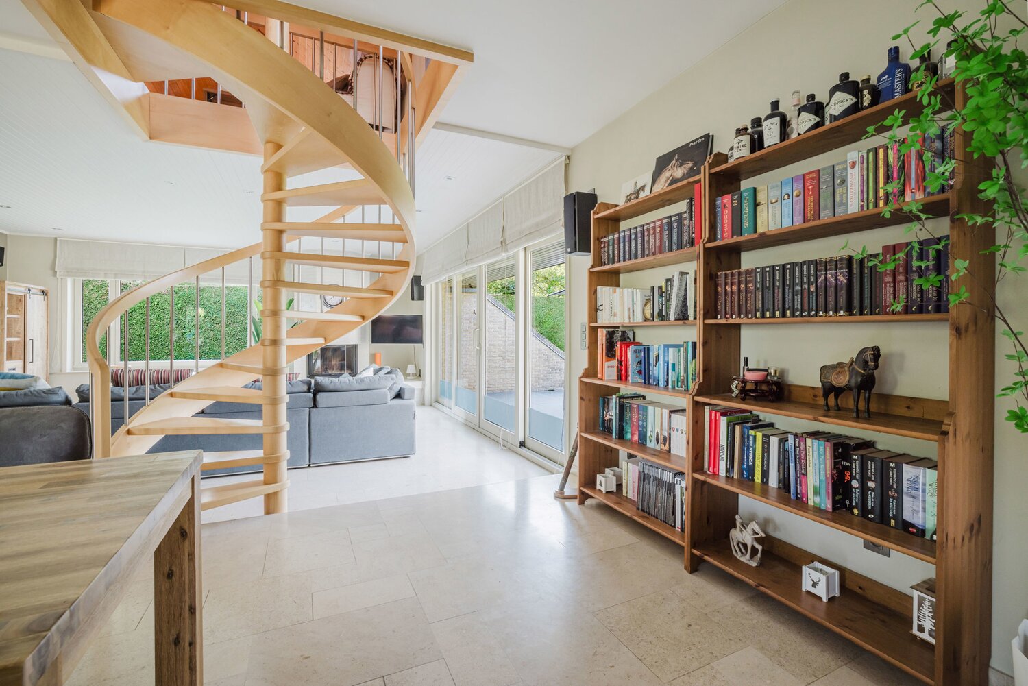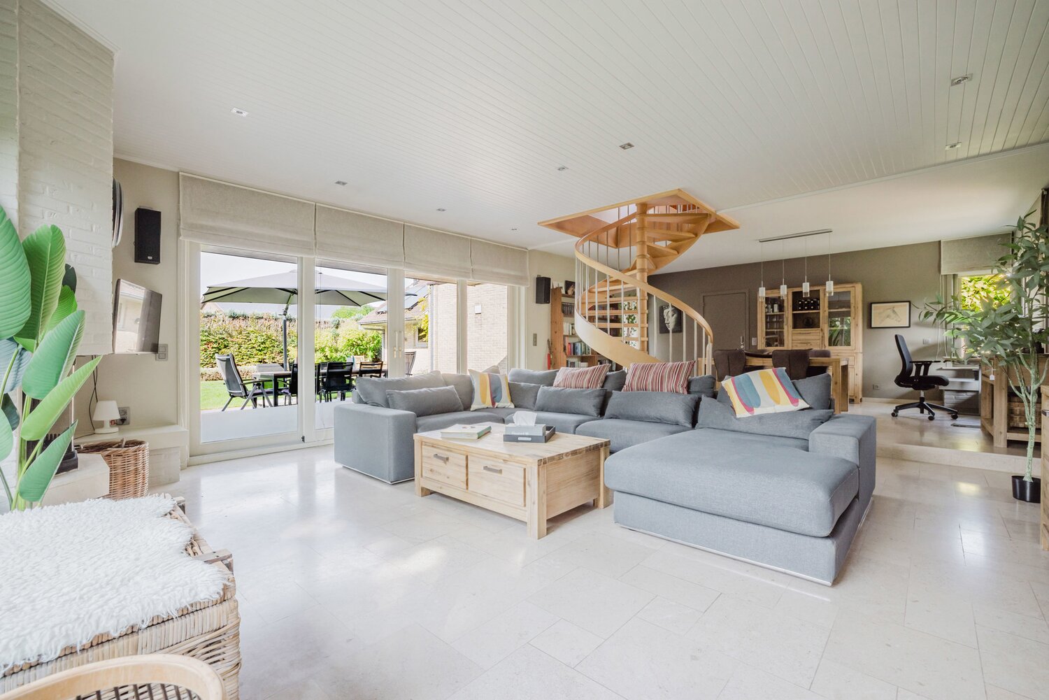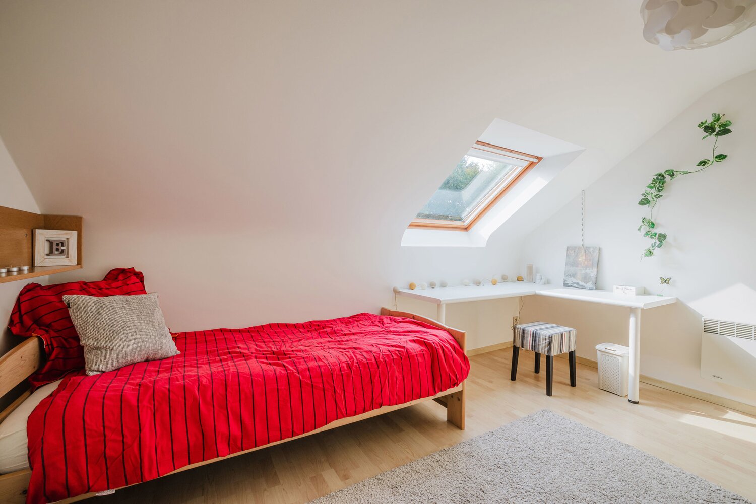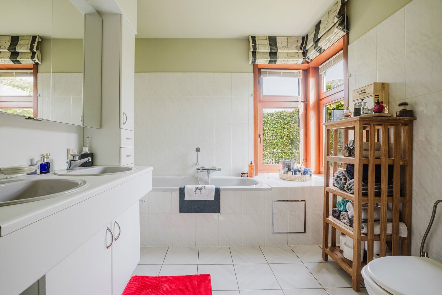 Cette maison soignée et prête à emménager vous accueille dans un vaste hall d'entrée doté de toilettes pour invités et d'un placard encastré pratique. D'un côté se trouve un salon particulièrement spacieux et lumineux, prolongé par un bureau — idéal pour le télétravail ou comme espace de loisirs. L'espace de vie s'ouvre naturellement sur une cuisine moderne entièrement équipée, offrant tout le confort nécessaire.