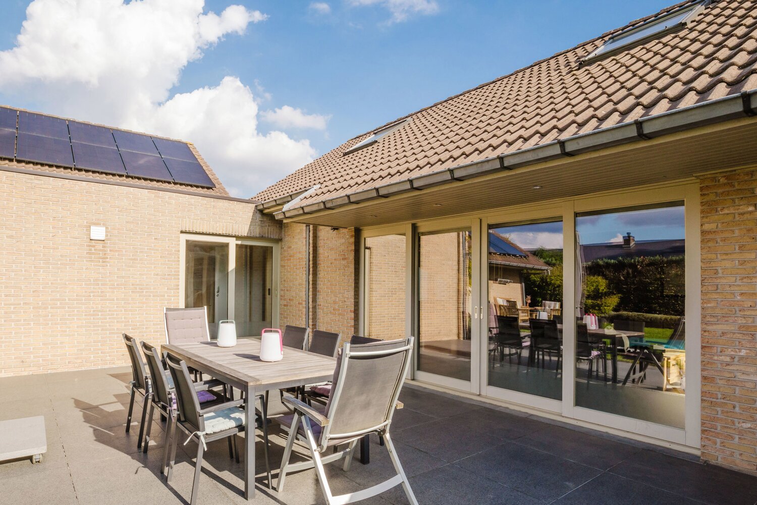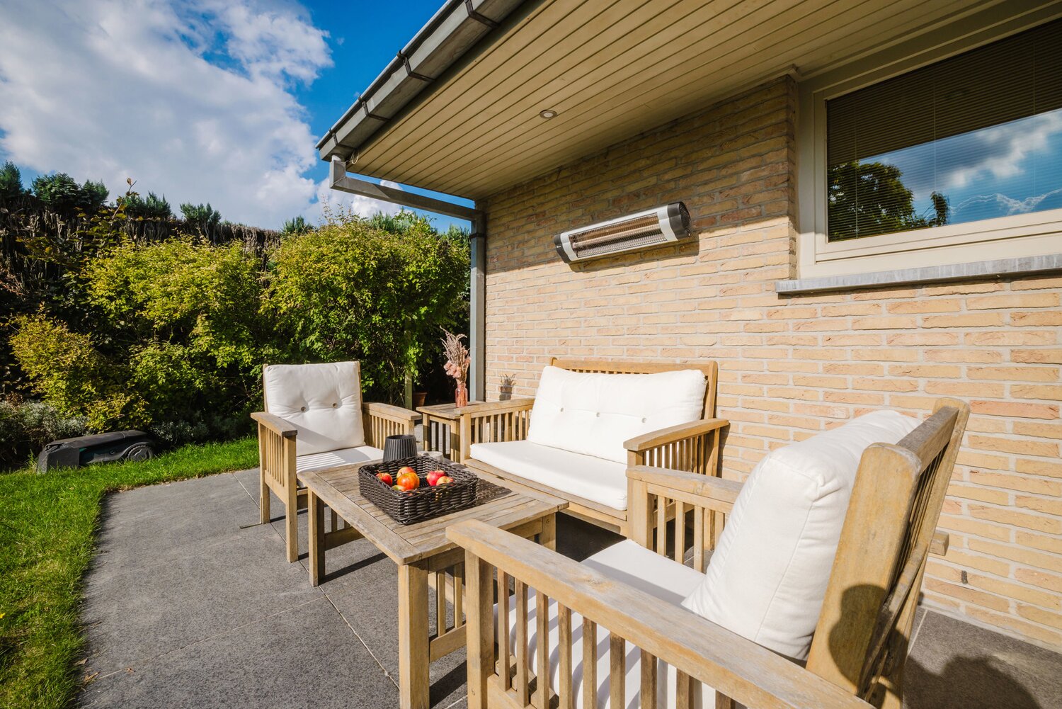 À l'arrière, vous profiterez d'une terrasse exceptionnellement grande donnant sur un jardin entièrement aménagé et facile d'entretien — un endroit idéal pour se détendre en toute tranquillité ou recevoir des invités.