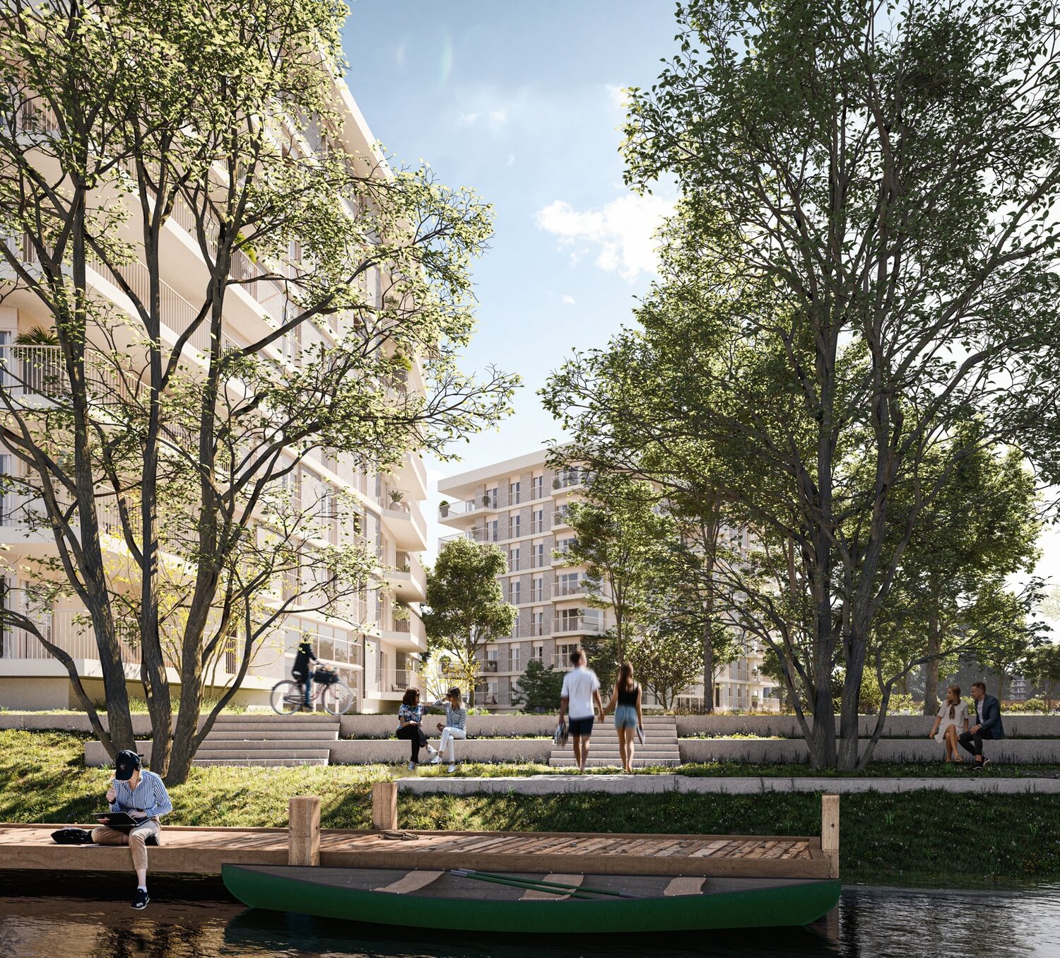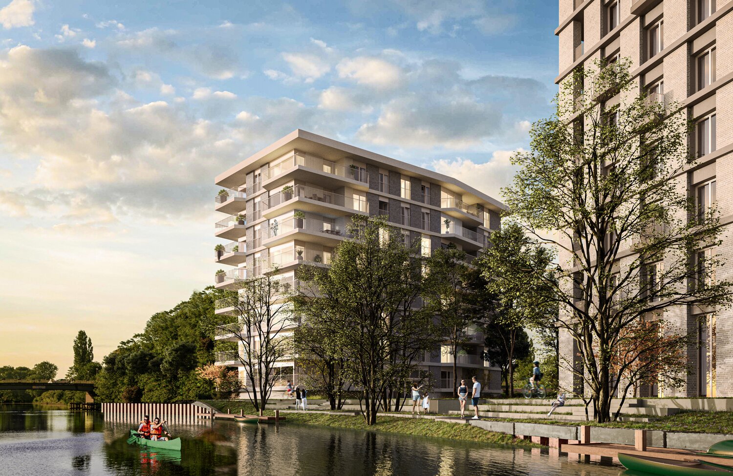 Entièrement entouré de verdure, Oeverpoort constitue le lien entre la Lys et le parc. Les 8 étages offrent de la place pour 40 unités, et en surélevant le rez-de-chaussée d'un demi-étage par rapport au niveau du sol, les app du rez-de-chaussée bénéficient de la même qualité que ceux qui se trouvent au-dessus.