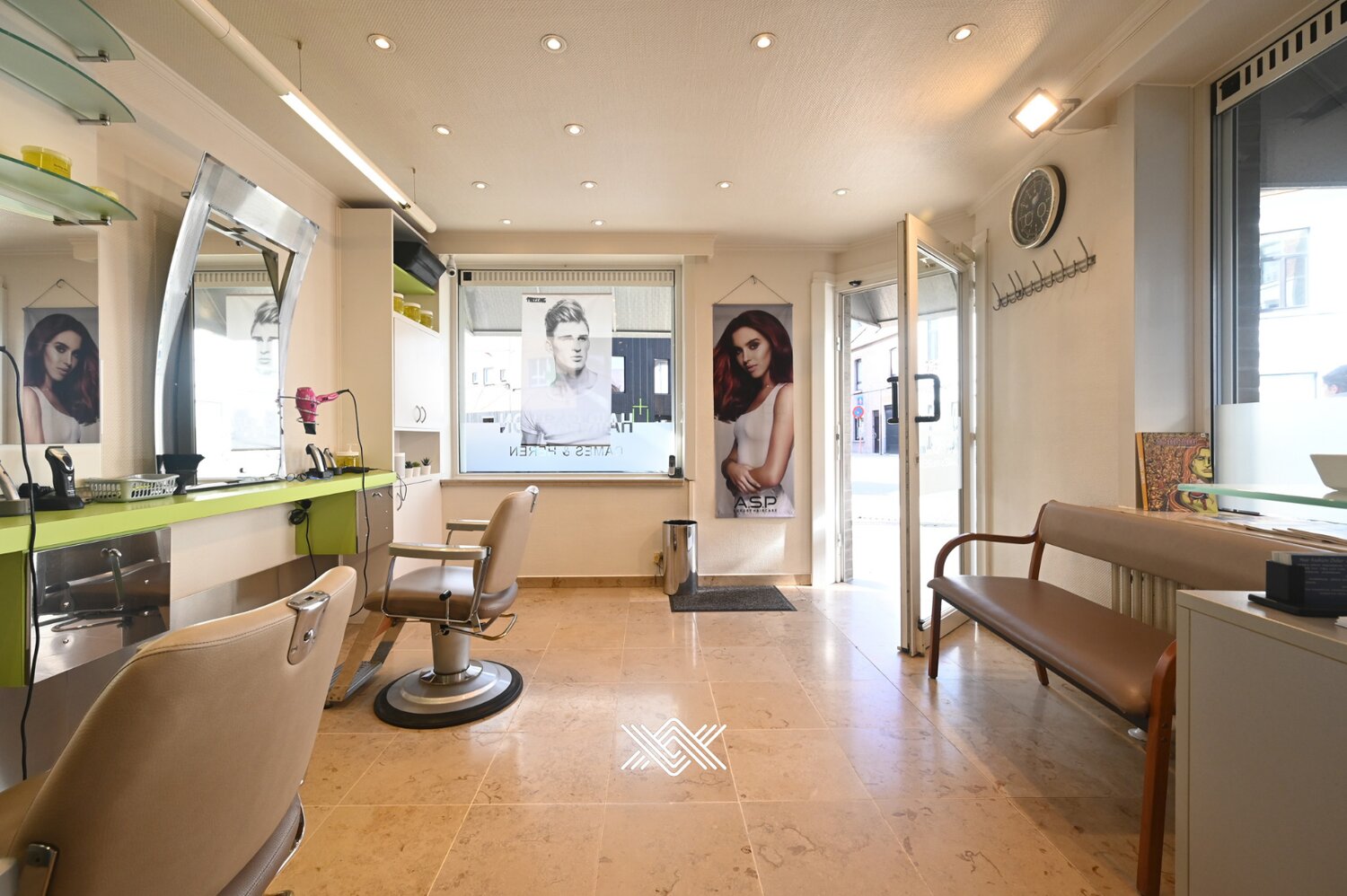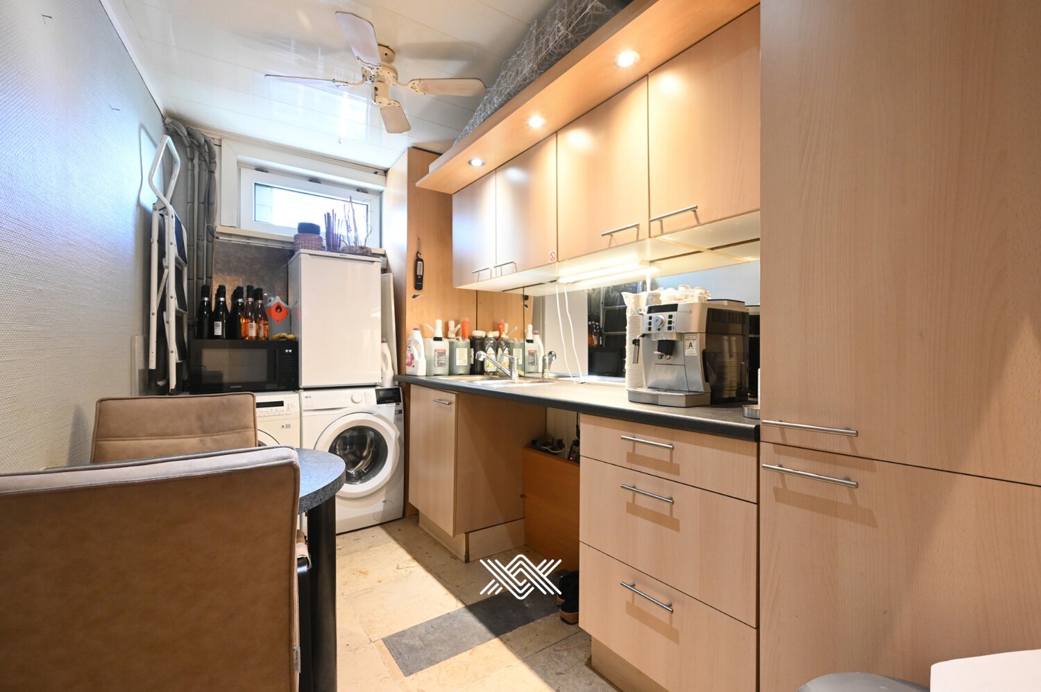 Het gelijkvloers omvat een volledig ingericht kapsalon, instapklaar voor wie een bloeiende zaak wil verderzetten of een eigen concept wil uitbouwen. Naast het kapsalon bevindt zich een studio met aparte ingang, voorzien van een leefruimte, keuken, badkamer en toilet. Deze extra ruimte biedt tal van mogelijkheden, zoals een bijkomende huuropbrengst of een praktische oplossing voor wie wonen en werken wil combineren.