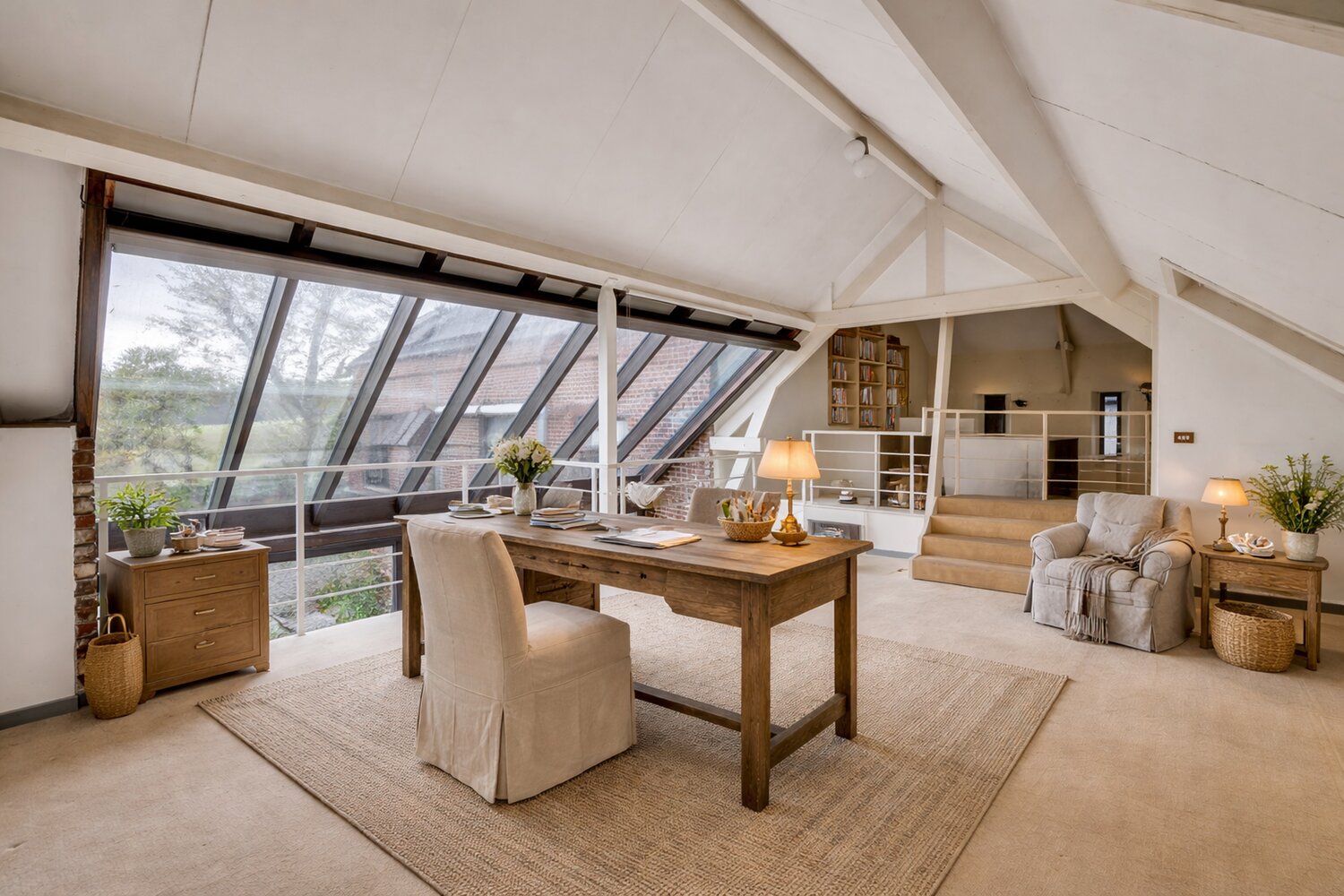 Pour plus d'informations ou pour visiter, appelez le 054 69 39 36 - Pour plus de photos, consultez www.topo-immo.be - Cette ferme extrêmement charmante a été entièrement rénovée en 2015 et combine de manière unique le luxe contemporain avec des éléments architecturaux authentiques. Située dans une rue très calme à Ogy, cette propriété offre un mélange rare de confort, de caractère et de fonctionnalité. Son agencement ouvert et son agencement naturel en font un lieu idéal pour combiner vie privée et vie professionnelle, ou pour un concept rentable tel que la location en chambres d'hôtes dans deux entités distinctes. Un studio avec kitchenette et salle de bains dispose d'une entrée indépendante, mais peut également être intégré à la maison principale. Il y a également un appartement avec une cuisine séparée, une salle de bains et jusqu'à trois chambres, également accessible par une entrée indépendante ou pouvant être intégré à l'ensemble de la maison. Au premier étage se trouve un magnifique espace de travail ou de jeux avec vue sur les champs et stores automatiques. La cuisine entièrement sur mesure est équipée de quatre fours différents, d'un refroidisseur à vin, d'une plaque à induction, d'une hotte aspirante et d'un espace de rangement, avec en plus une vue magnifique sur la nature. Le jardin orienté sud-ouest dispose d'un étang et d'un saule pleureur. La chambre principale offre un dressing et une salle de bains attenants. Au total, il y a quatre salles de bains, dont une près de la piscine couverte avec sauna intégré. Grâce à 48 panneaux solaires et à un chauffe-eau solaire, la facture énergétique reste modérée.