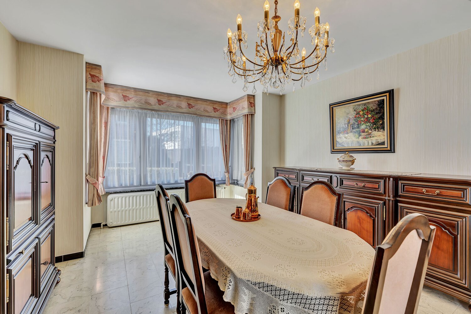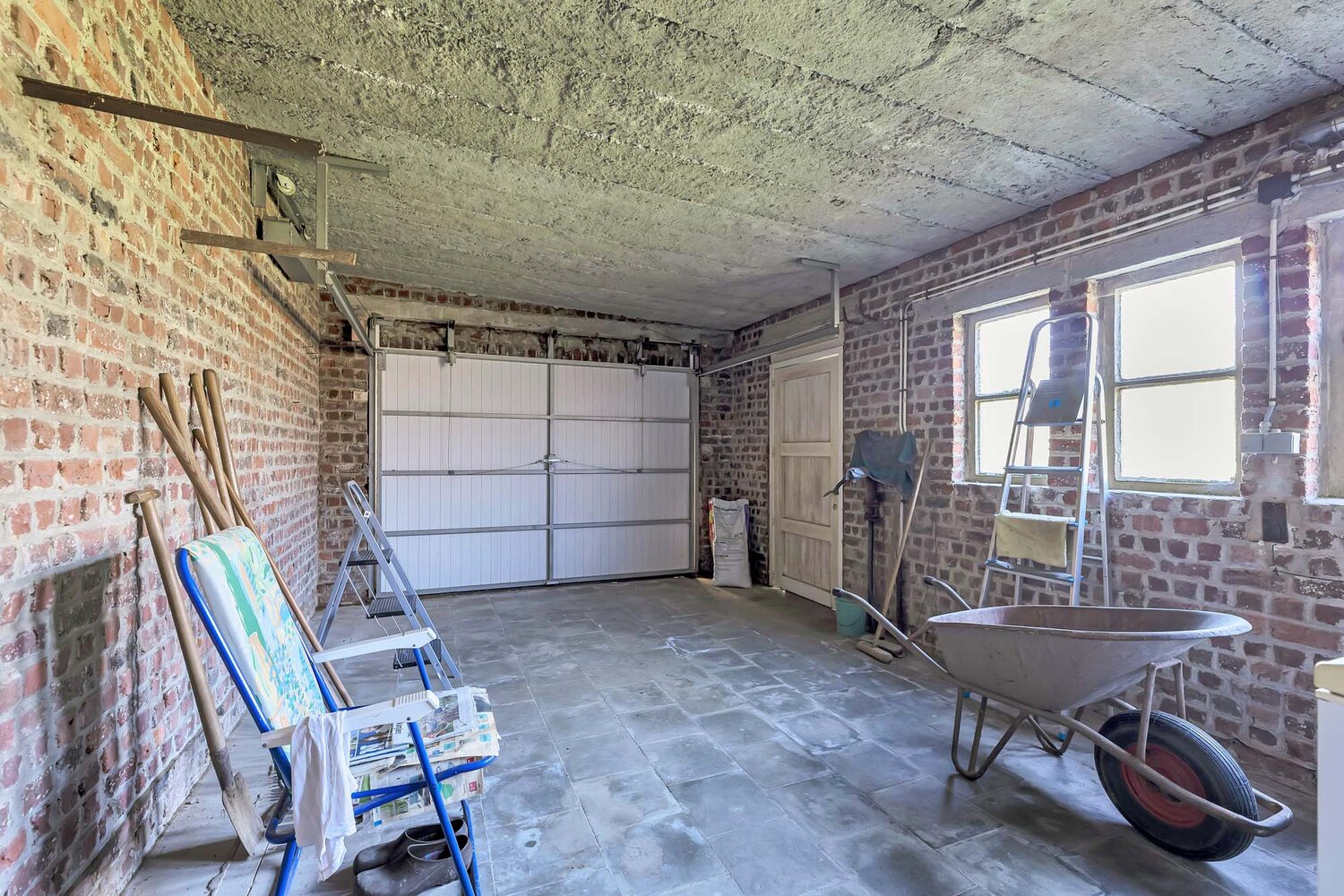 Boven bevinden zich twee ruime slaapkamers en een apart bureau, perfect als thuiswerkplek of babykamer, alsook nog een badkamer. Extra bergruimte is er in de praktische kelder, terwijl de ruime garage niet alleen plaats biedt voor een wagen maar ook stockagemogelijkheid voorziet. Bergzolder bereikbaar via uittrekbare trap.