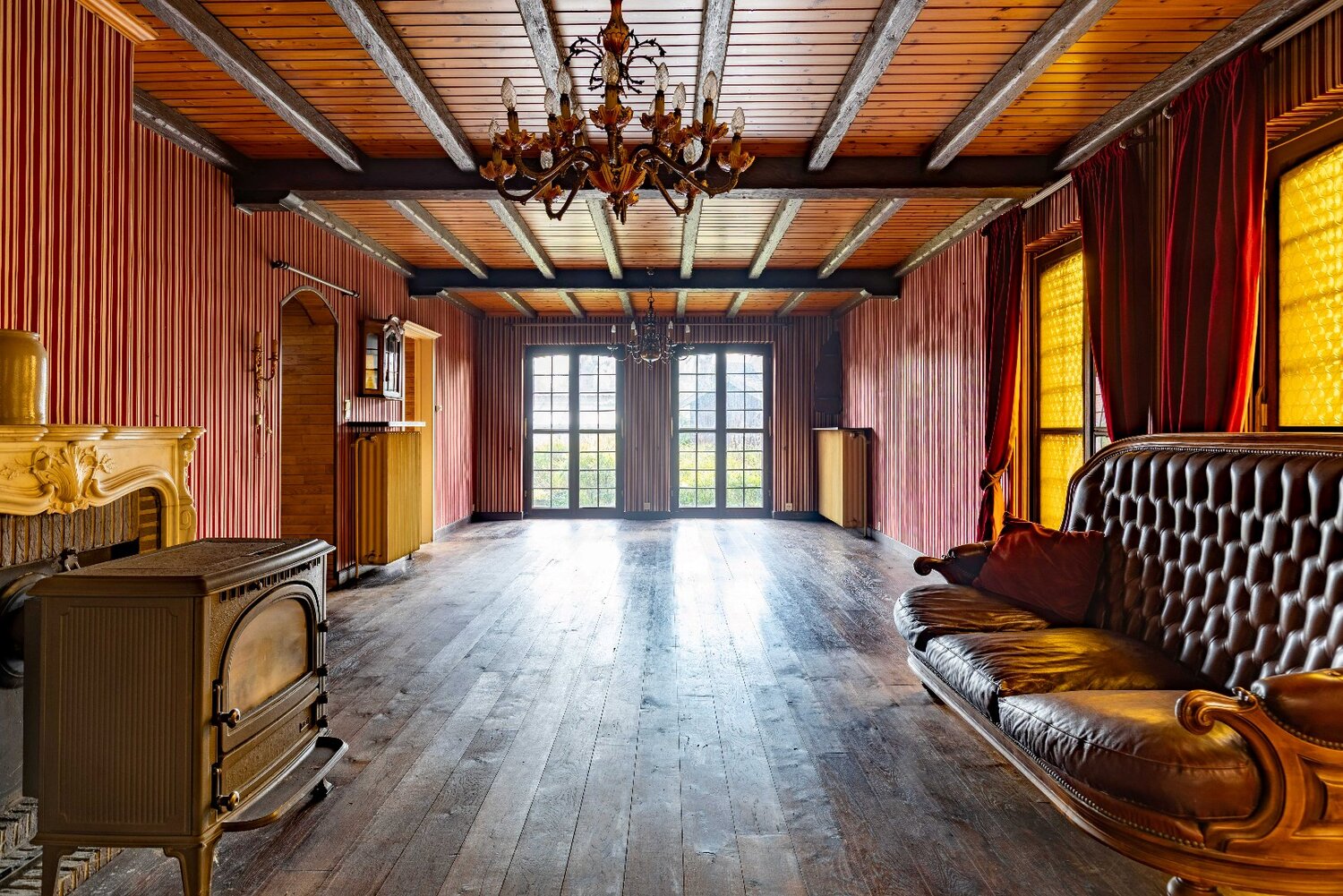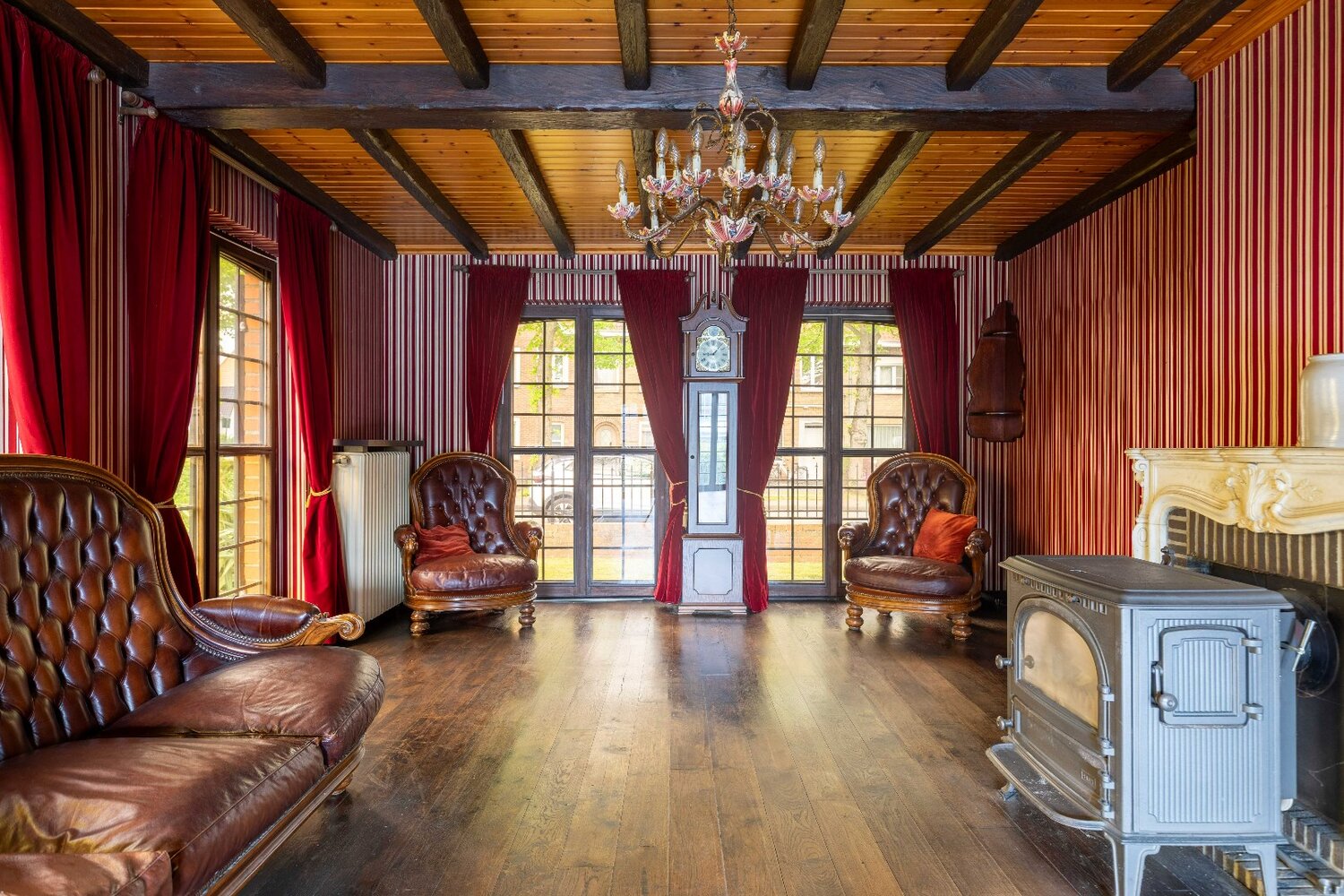 Binnenin geniet u van een heldere leefruimte met ramen tot op de grond, een sfeervolle houtkachel en warme parketvloeren. De massieve houten keuken sluit hier harmonieus op aan. Boven bevinden zich drie volwaardige slaapkamers, een badkamer en extra bergruimte. De woning is volledig onderkelderd, wat heel wat mogelijkheden biedt voor opslag of hobbyruimte. De centrale verwarming werd in 2020 volledig vernieuwd, en hoewel de woning hier en daar nog op te frissen is, geldt er geen renovatieplicht, wat u extra vrijheid biedt om op uw tempo te moderniseren.