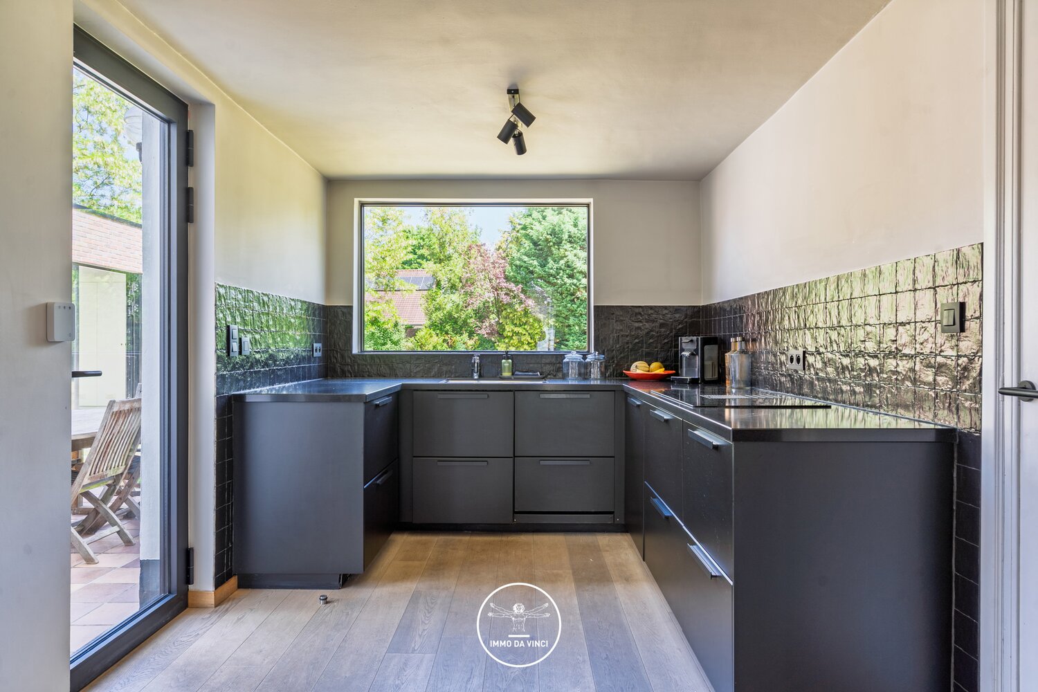 U komt binnen via een centrale inkomhal met gastentoilet. Van daaruit heeft u toegang tot de open, lichtrijke leefruimte, momenteel ingericht met een gezellige zithoek, bureauruimte en eetplaats. De volledig uitgeruste keuken met zicht op de tuin staat in verbinding met de woonkamer. Aansluitend vindt u een praktische berging en een kelder met extra opslagruimte.