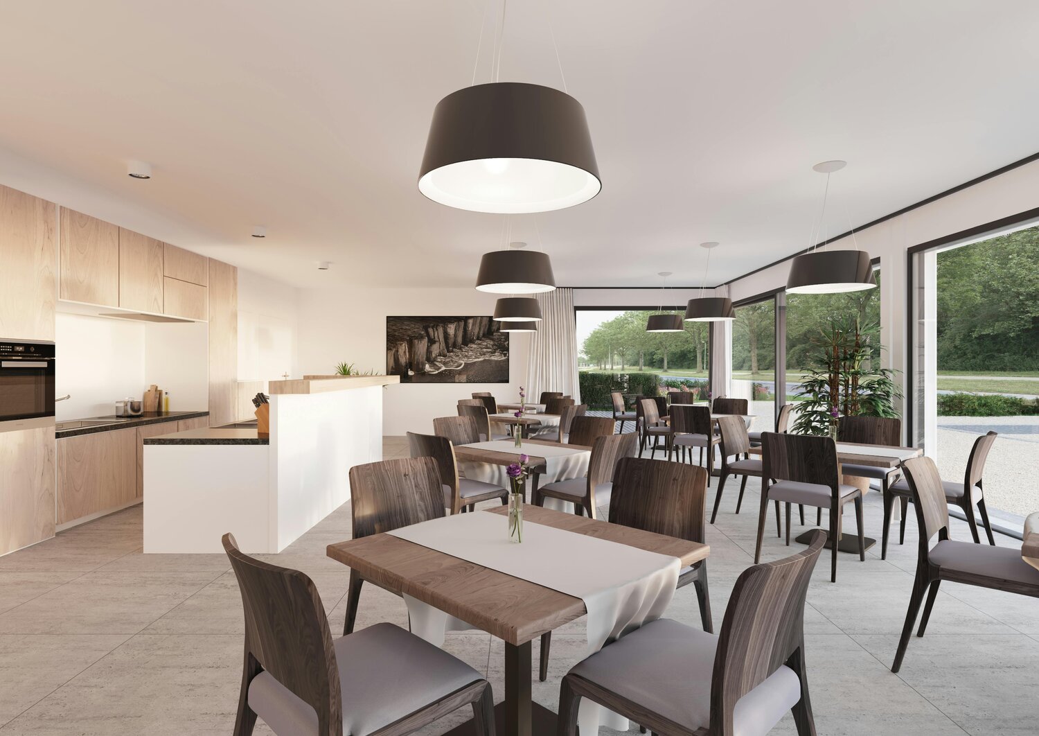 Depuis la terrasse, vous avez une vue magnifique sur le parc paysager de la ville.