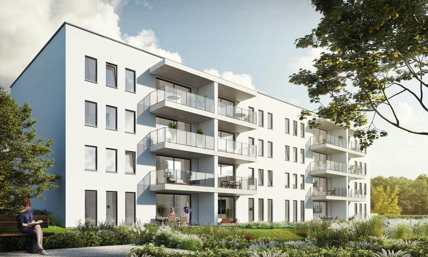 Tous les appartements sont finis de manière qualitative, élégante et économe en énergie (niveau E 30) et disposent de spacieuses terrasses exposées au soleil.