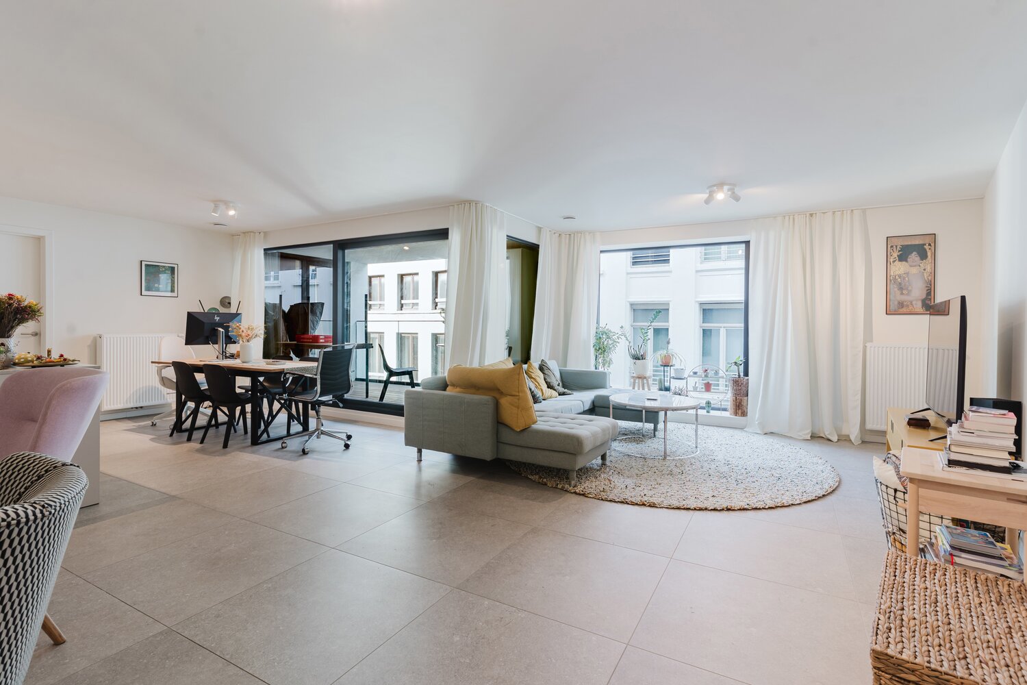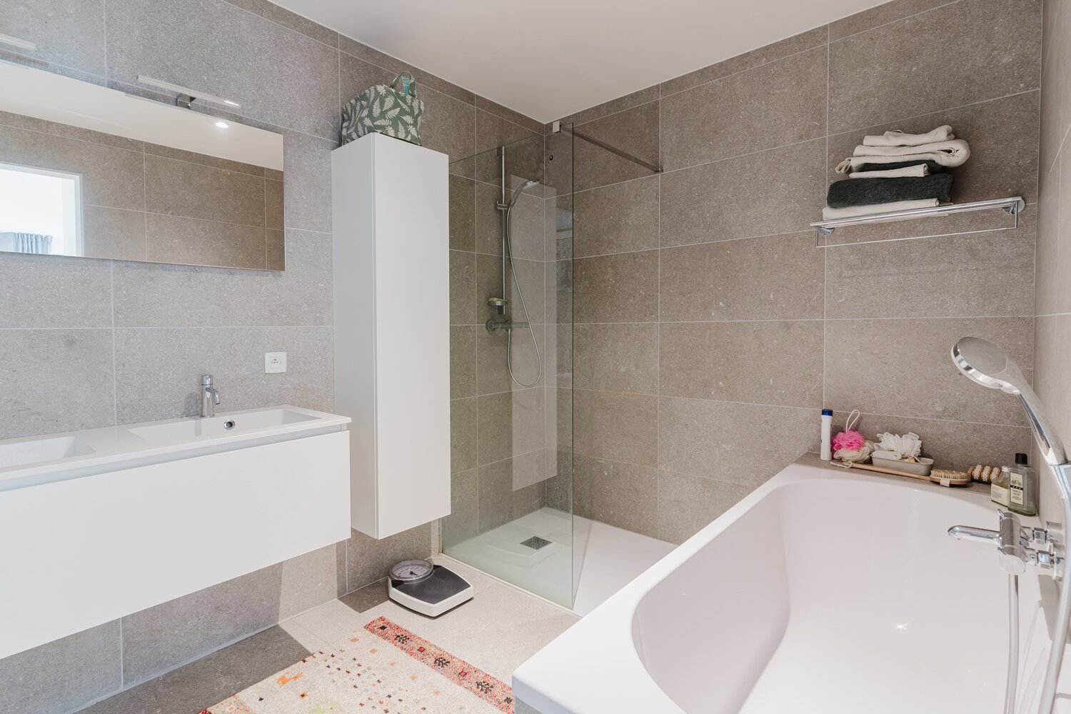 U komt dit moderne appartement binnen in een centrale inkomhal met vestiaire en gastentoilet. Vervolgens heeft u toegang tot de open leefruimte die is ingedeeld met een eetgedeelte, een gezellige zithoek en een volledig uitgeruste moderne keuken met kookeiland. De grote raampartijen zorgen voor een overvloed aan natuurlijk licht en versterken het ruimte gevoel. Vanuit de leefruimte heeft u toegang tot het ruime inpandige terras.Verder beschikt het appartement over twee slaapkamers, een aparte douchekamer en een badkamer uitgerust met ligbad, douche en dubbele wastafel.