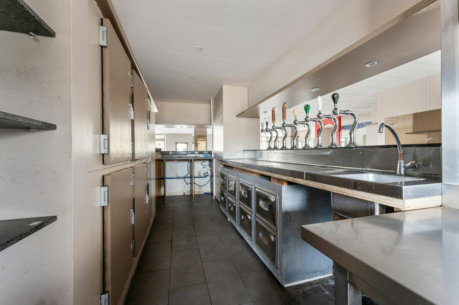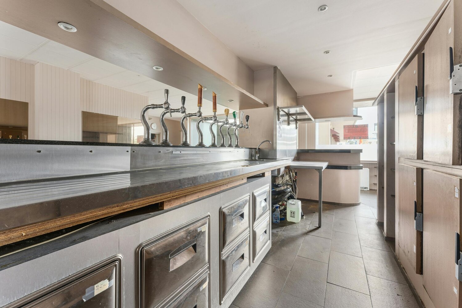 Disposition : salle de consommation - cuisine - 2 débarras - toilettes