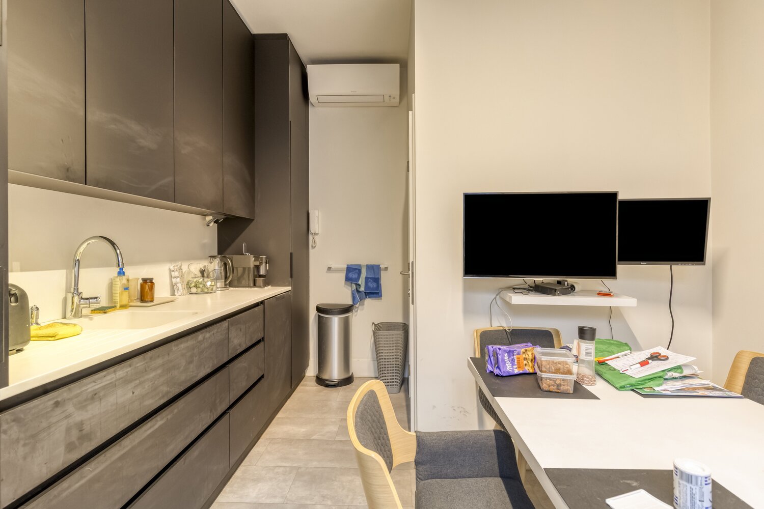 Boven de handelszaak vinden we vijf studio's die volledig inspelen op de noden van de Brusselse huurmarkt.