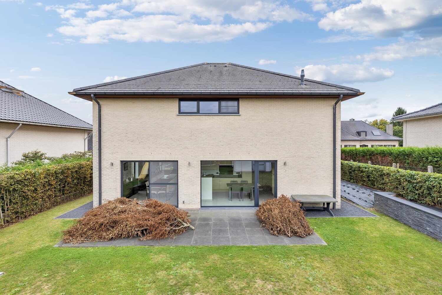 Voor meer info of een bezoek, bel 054 69 39 37 - UNIEKE AANBIEDING - Topo-Immo biedt met trots deze landelijk gelegen villa aan. Deze energiezuinige woning uit 2008 verkeert in uitstekende staat en garandeert comfortabel en aangenaam wonen. Op het gelijkvloers bevindt zich een charmante inkomhal met gastentoilet. Via een stijlvolle glazen deur bereikt men de lichtrijke woonkamer, ingedeeld in een gezellig salon met gashaard en een eetplaats. Aansluitend vindt men een volledig geïnstalleerde keuken, afgewerkt met kwaliteitsmaterialen, die niet alleen uitkijkt op de tuin maar ook directe toegang biedt tot het terras. Verder beschikt het gelijkvloers over een praktische berging en een inpandige garage. De bovenverdieping omvat een ruime nachthal en vier volwaardige slaapkamers. De master bedroom is voorzien van een dressingruimte, een wasplaats, een berging (die omgevormd kan worden tot douchekamer), een apart toilet en een luxueuze badkamer met zowel een inloopdouche als een ligbad. Buiten geniet u van een ruime oprit met plaats voor meerdere wagens, een verzorgde voortuin, een prachtig terras waar u volledig tot rust kunt komen, en een onderhoudsvriendelijke tuin. Instapklaar - Vloerverwarming - Gunstig EPC - Elektriciteit conform - Regenwaterput van 7.000 l (Maatregelenregister in aanvraag)