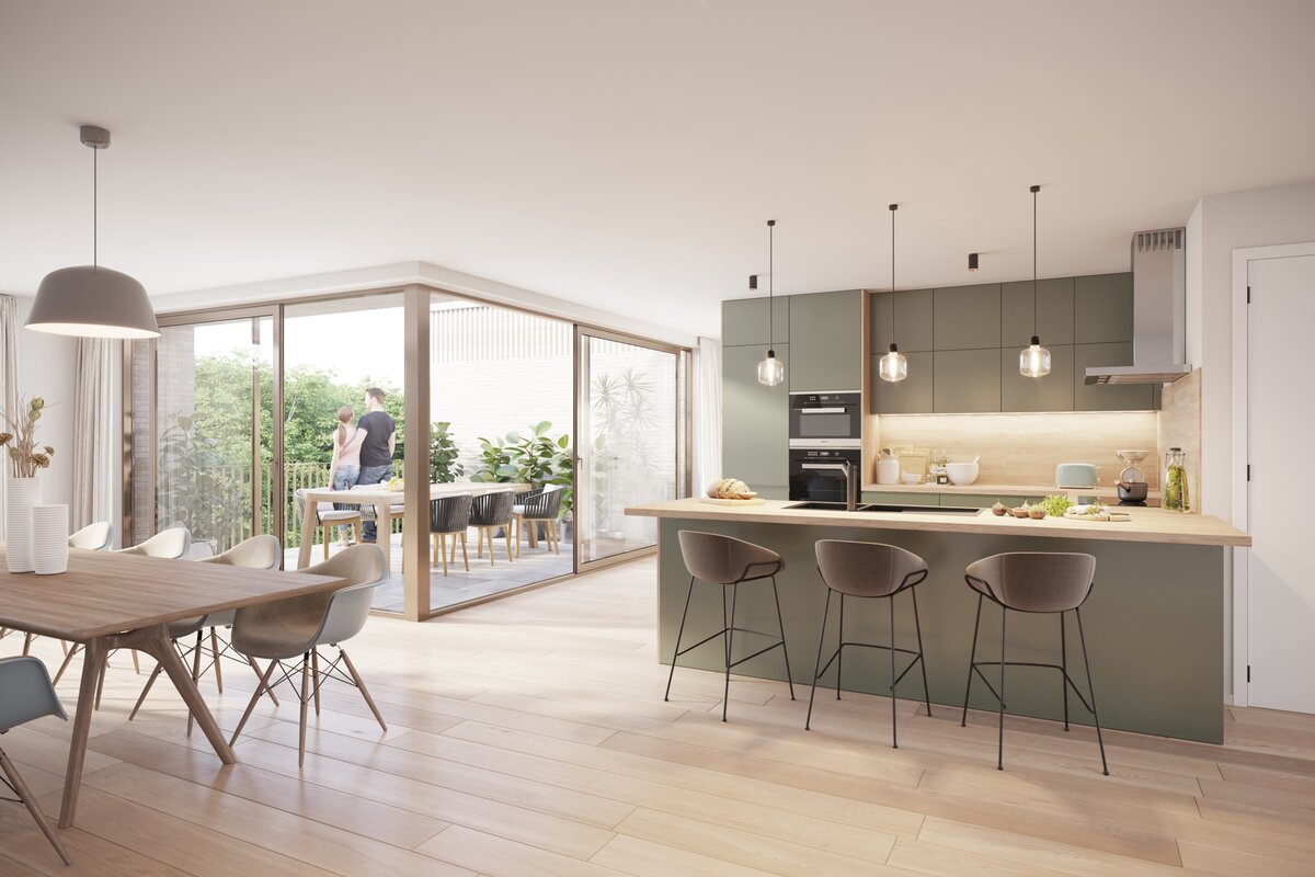 Vous avez également votre mot à dire dans la finition de l'appartement. Le jardin commun comprend un espace vert avec un étang et une terrasse ensoleillée. Il est possible d'acheter une place de parking souterrain.