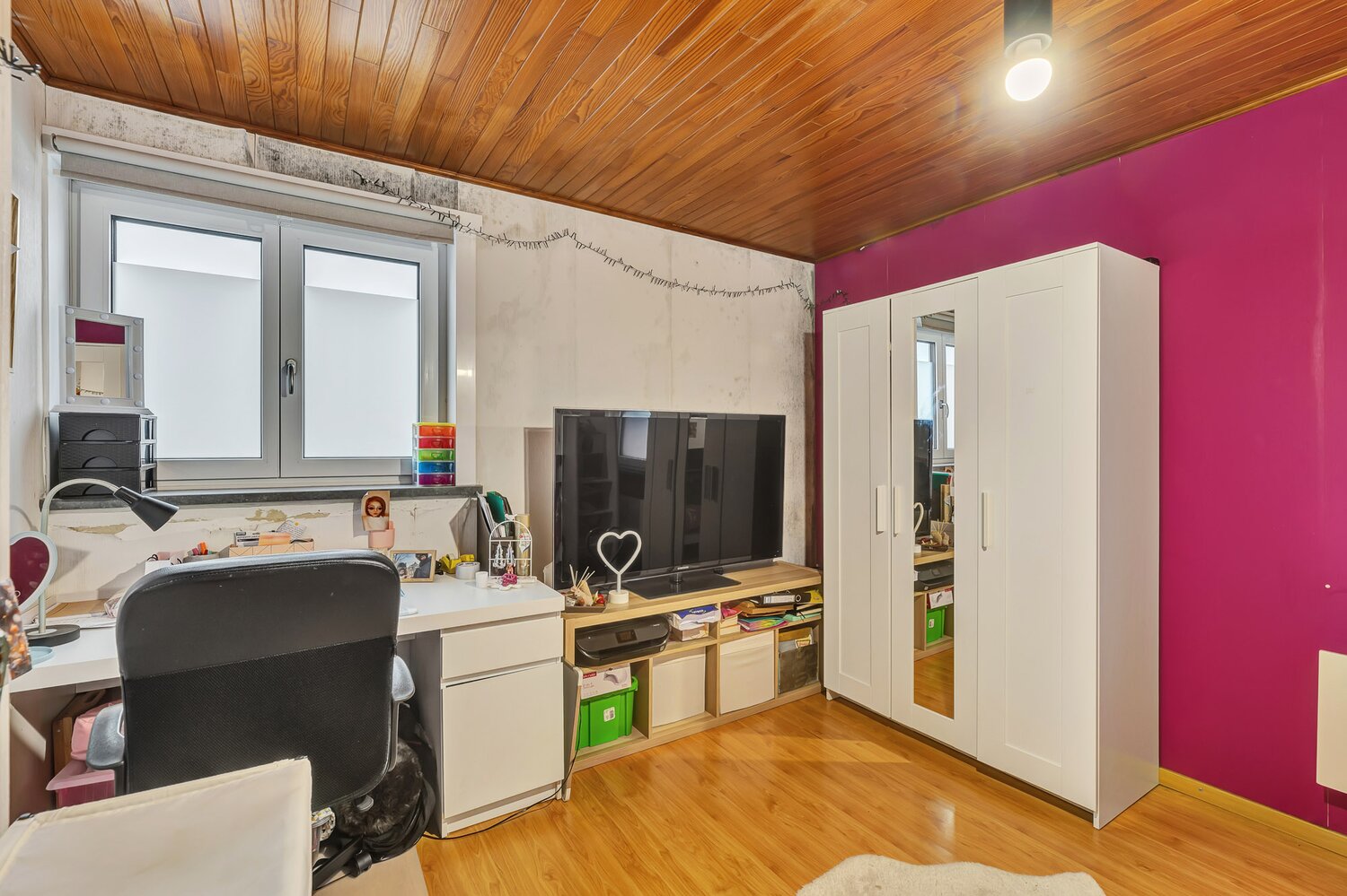 Bij het betreden van de woning komt u in de inkomhal met apart gastentoilet. De lichtrijke living sluit aan op de keuken en vormt een aangename leefruimte. Op de verdieping bevinden zich drie slaapkamers en een badkamer. De zolder biedt bijkomende opbergruimte en extra mogelijkheden.
