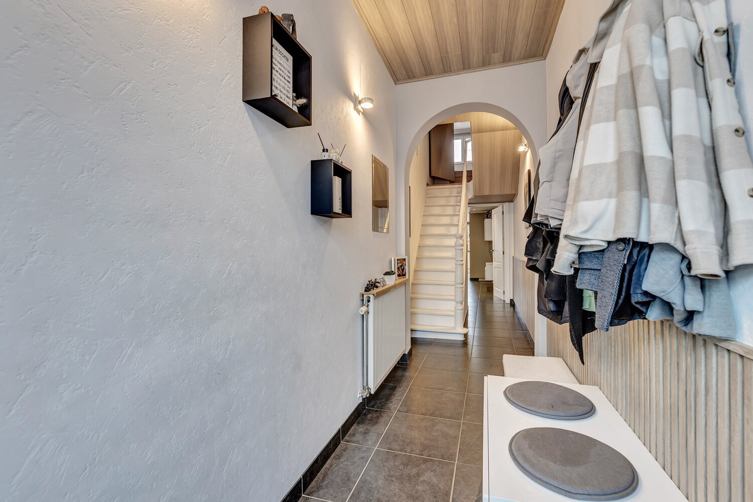 Voor meer info of een bezoek, bel 054 69 39 36 - Nabij het centrum van Denderleeuw bevindt zich deze instapklare woning. Scholen, winkels en het openbaar vervoer zijn gelegen in de onmiddellijke omgeving. Het station van Denderleeuw is vlot bereikbaar te voet, terwijl de oprit van de E40 richting Gent en Brussel zich op slechts 5 minuten rijden bevindt. Op het gelijkvloers vinden we een inkomhal, een lichtrijke leefruimte, een volledig ingerichte keuken, een berging/wasruimte, een garage en een apart toilet. De eerste verdieping omvat een nachthal, twee slaapkamers en een badkamer uitgerust met een bad, douche, dubbele lavabo en toilet. Via een vaste trap bereikt men het zolderverdiep, waar zich een derde slaapkamer bevindt met ingemaakte kasten. Daarnaast beschikt de woning over een volledig aangelegde tuin met een prachtig terras en is er voldoende parkeergelegenheid in de nabije omgeving. CV op aardgas - Airco - Elektriciteit conform - Centrale ligging - Goede EPC!