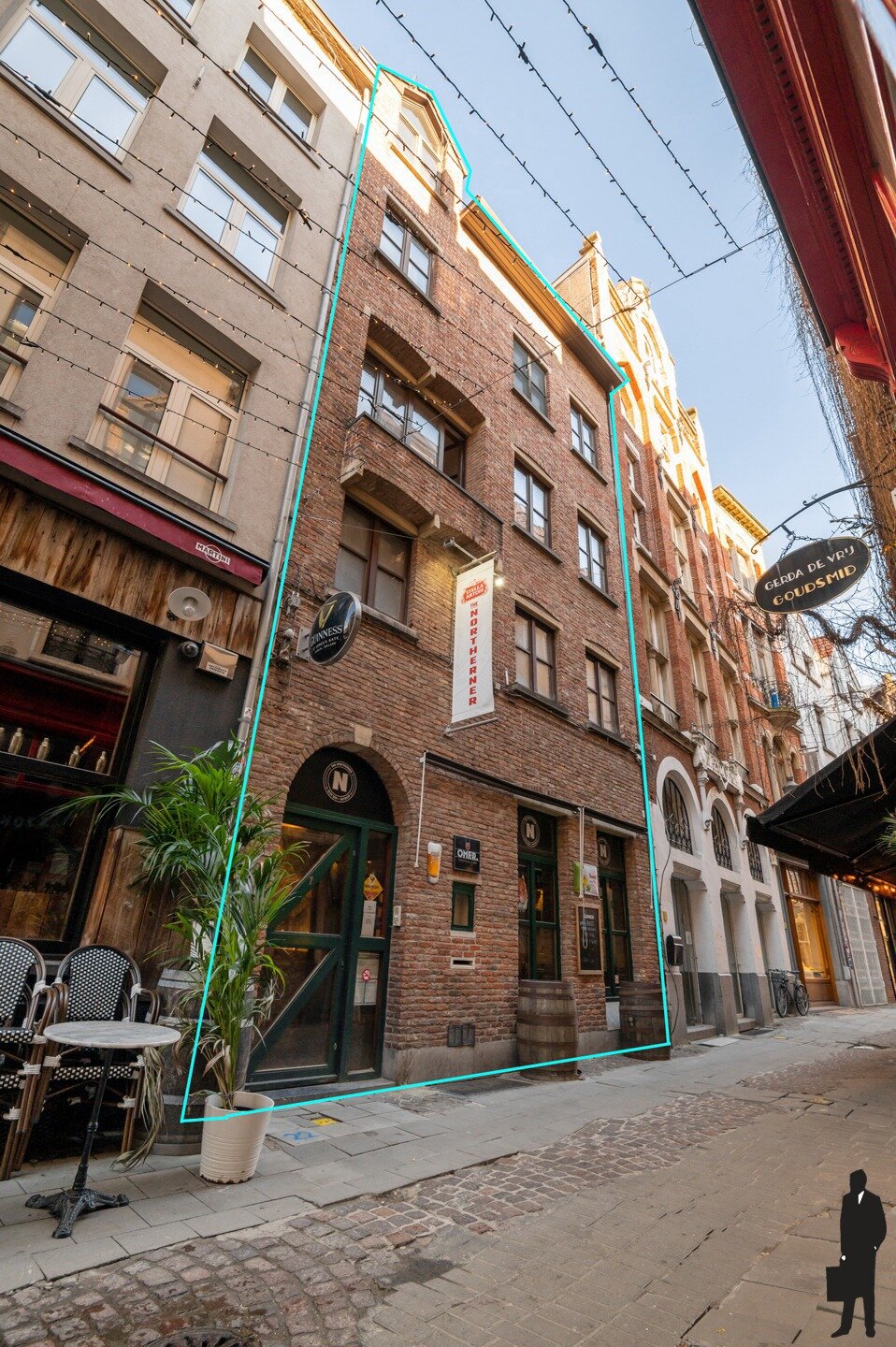 Dit woonhuis met café/restaurant is gelegen in de Wijngaardstraat, één van de gezelligste straten van Antwerpen. Een fantastische locatie in het hart van het oude centrum dat uitkomt op het prachtige Hendrik Conscienceplein en op wandelafstand van de Grote Markt en de Kathedraal.