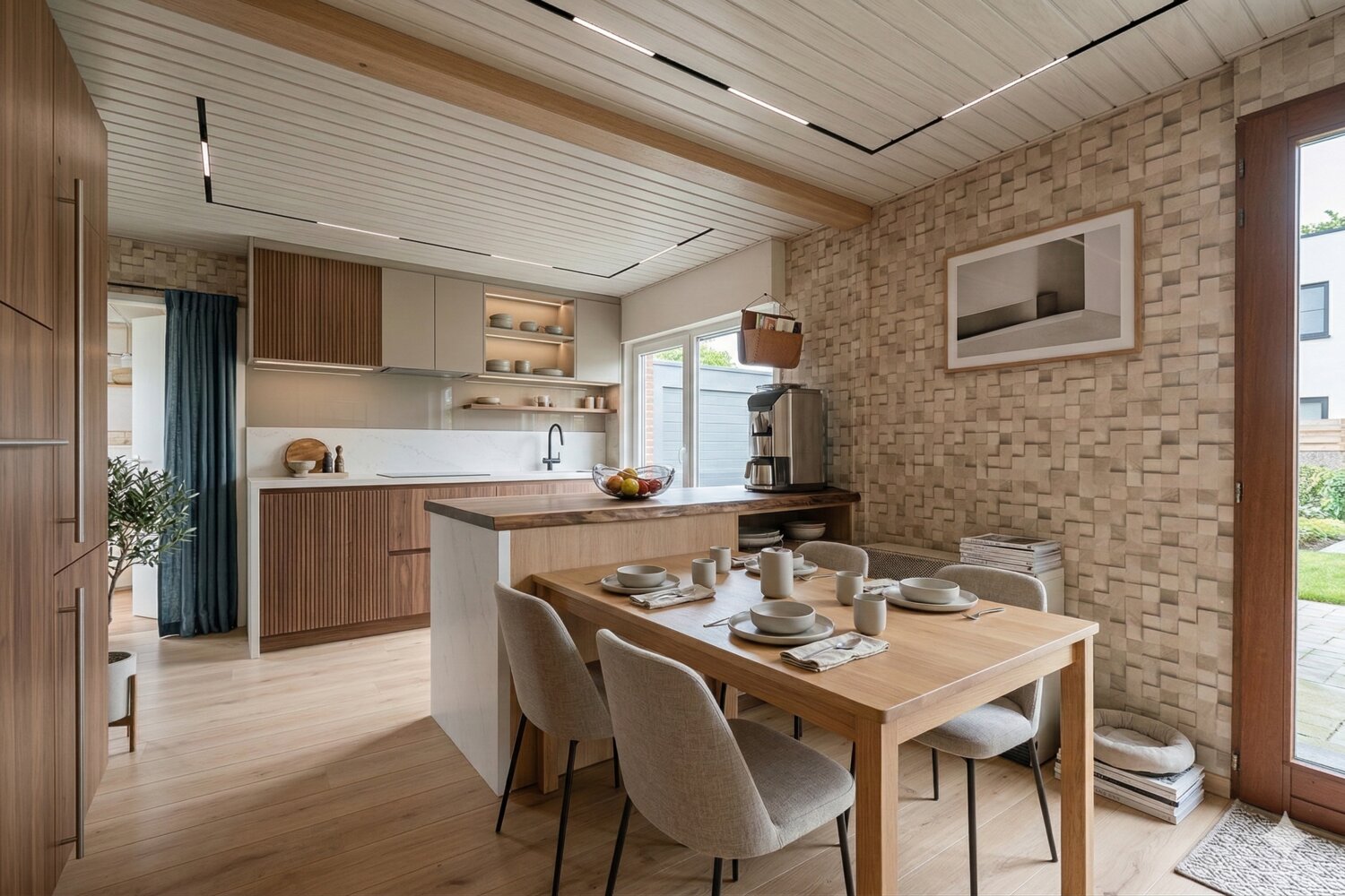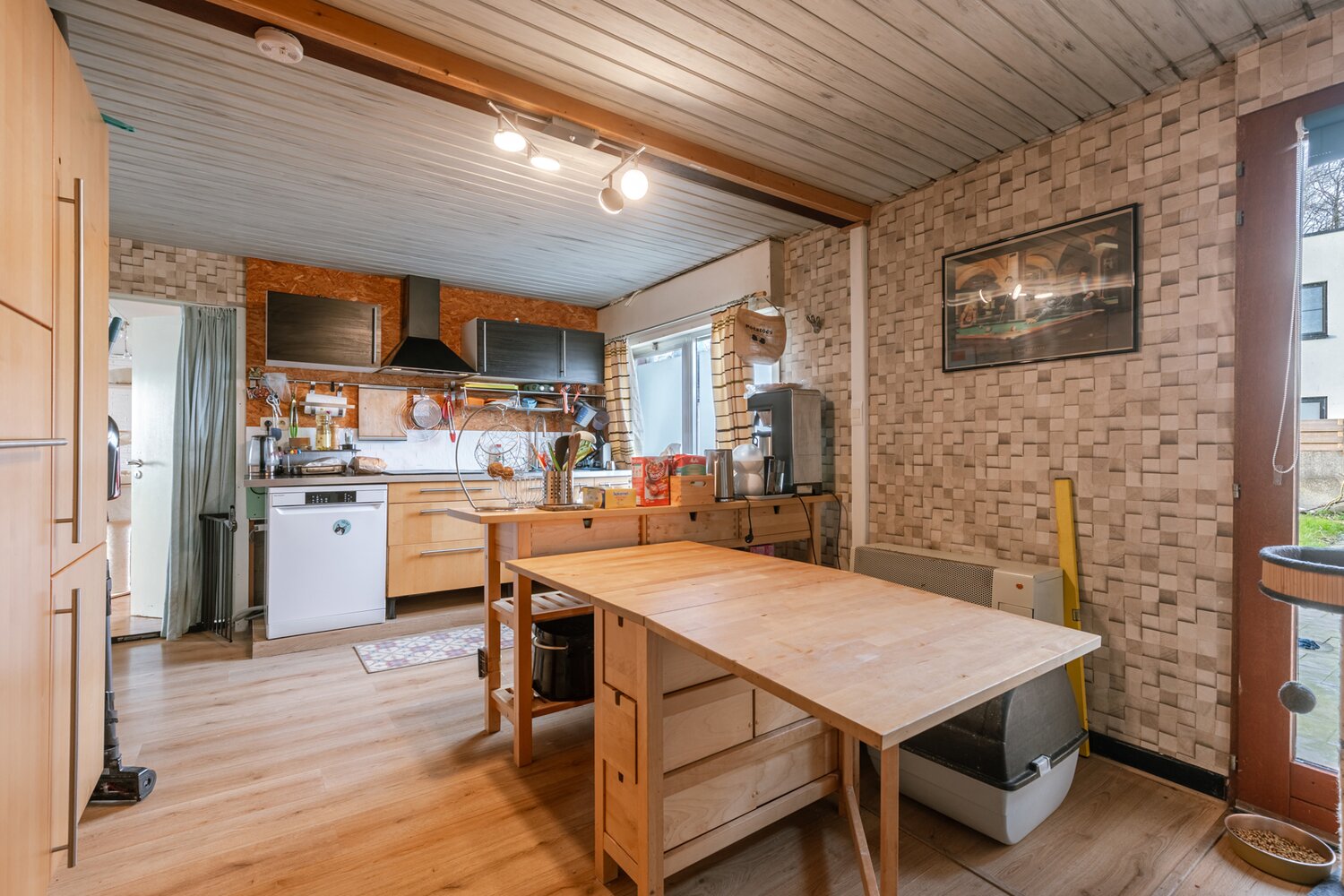 En entrant dans la maison, vous arrivez dans un salon lumineux avec une agréable cheminée à gaz. La cuisine est attenante et donne directement accès au jardin. Au rez-de-chaussée, vous trouverez également la chambre principale et la salle de bains, équipée d'un lavabo et d'une douche dans la baignoire.