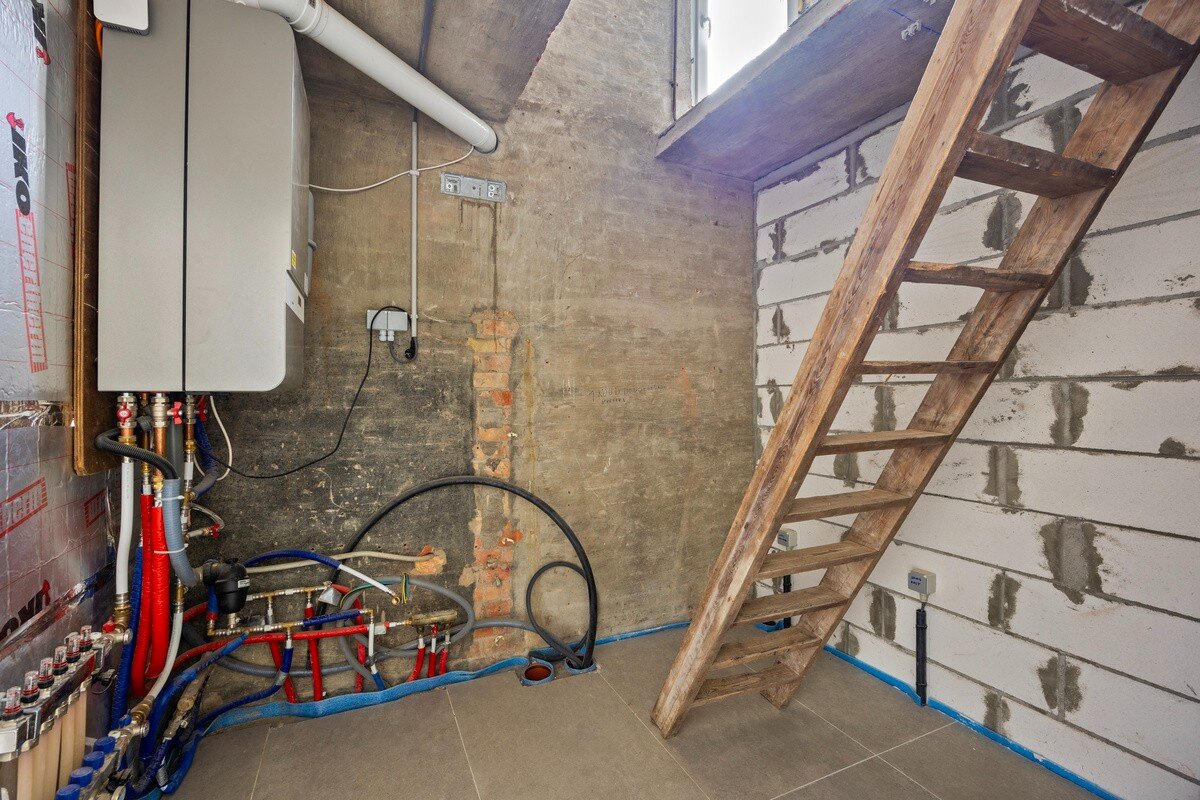 Deze charmante woning werd grondig en kwalitatief gerenoveerd en combineert hedendaags wooncomfort met een verrassend ruimtelijk gevoel. Dankzij de doordachte indeling en afwerking is dit een ideale woning voor wie zorgeloos wil wonen met ruimte om eigen accenten te leggen. Het gelijkvloers werd volledig vernieuwd en is afgewerkt met vloerverwarming, nieuwe tegels en warme houtaccenten. De muren zijn schilderklaar. De volledig nieuwe, geïnstalleerde keuken sluit naadloos aan op de leefruimte en is uitgerust met alle nodige toestellen. Verder bevinden zich hier een gastentoilet en een praktische berging onder de trap. Achteraan is er een aparte wasruimte met aansluitingen voor wasmachine en droogkast. Vanuit deze ruimte leidt een trap naar een volledig afgewerkte mezzanine met geïsoleerd dak, die extra ruimte en flexibiliteit biedt. Vanuit het gelijkvloers is er tevens toegang tot de tuin, die recent volledig opnieuw werd ingezaaid. De eerste verdieping werd eveneens volledig gerenoveerd en omvat twee slaapkamers en een badkamer. Deze verdieping is structureel volledig afgewerkt en klaar voor verdere afwerking. De bevloering dient nog geplaatst te worden, wat de toekomstige eigenaar de mogelijkheid biedt om deze ruimtes naar eigen smaak af te werken. Op de derde verdieping bevindt zich bovendien een zolder, ideaal als extra bergruimte. Voor meer informatie of een bezoek, contacteer ons via 0472/33 50 60 of jan@drpvastgoed.be.