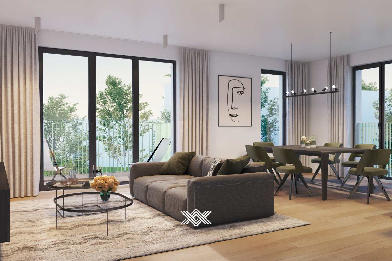 Bewoners genieten van een warmtepomp in combinatie akoestische en thermische isolatie, resulterend in een E-peil lager dan E22. Vloerverwarming is er de standaard.