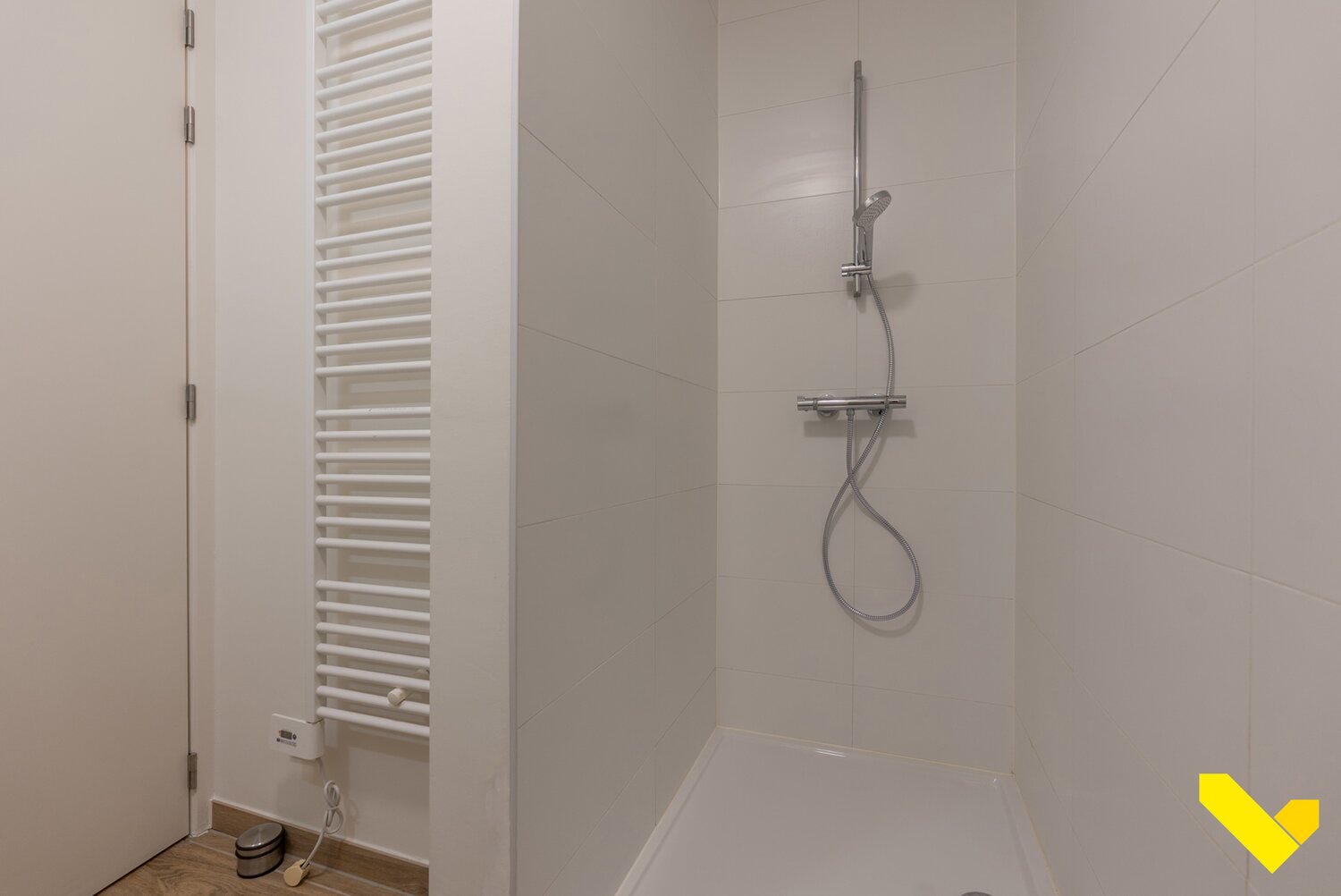 Verder beschikt het appartement over een ruime slaapkamer met tv-aansluitingen, een apart toilet en een badkamer met lavabo en inloopdouche.