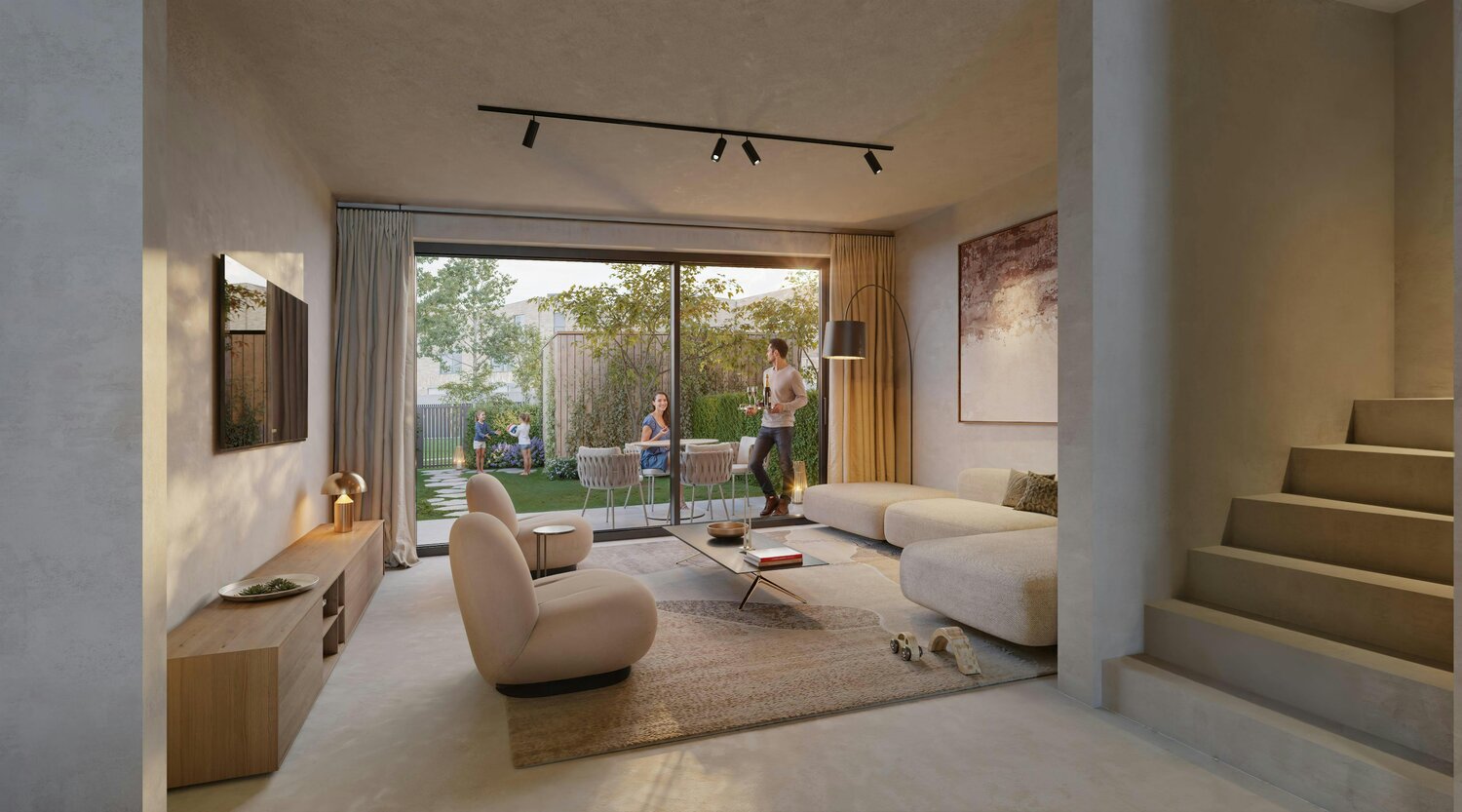 - un espace de vie confortable avec de grandes fenêtres et un accès direct au jardin