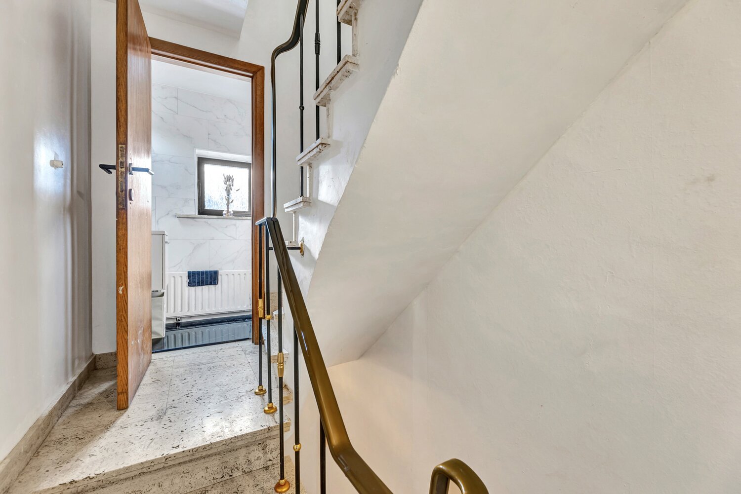 Voor meer info of een bezoek, bel 053 59 49 33 - TOPPER! - Op een rustige ligging nabij het centrum van Aalst bevindt zich deze instapklare bel-étagewoning. Winkels, scholen en openbaar vervoer bevinden zich in de onmiddellijke nabijheid. De uitvalsweg naar de E40 is vlot bereikbaar. Het pand werd grotendeels gerenoveerd en is onmiddellijk bewoonbaar. Mits enkele moderniseringen voldoet deze woning aan de hedendaagse normen. Het gelijkvloers omvat een inkomhal, een ruime garage, een ruime achterliggende berging/wasplaats en een verder af te werken badkamer. Op de eerste verdieping bevindt zich een hal, een lichtrijke leefruimte met salon en eetplaats, een keuken en een ruim terras. De tweede verdieping bestaat uit een nachthal, een toilet, één badkamer en twee volwaardige slaapkamers. Geen renovatieplicht (EPC D) - CV op aardgas - Buitenschrijnwerk vernieuwd in PVC dubbel glas - Plat dak met roofing.