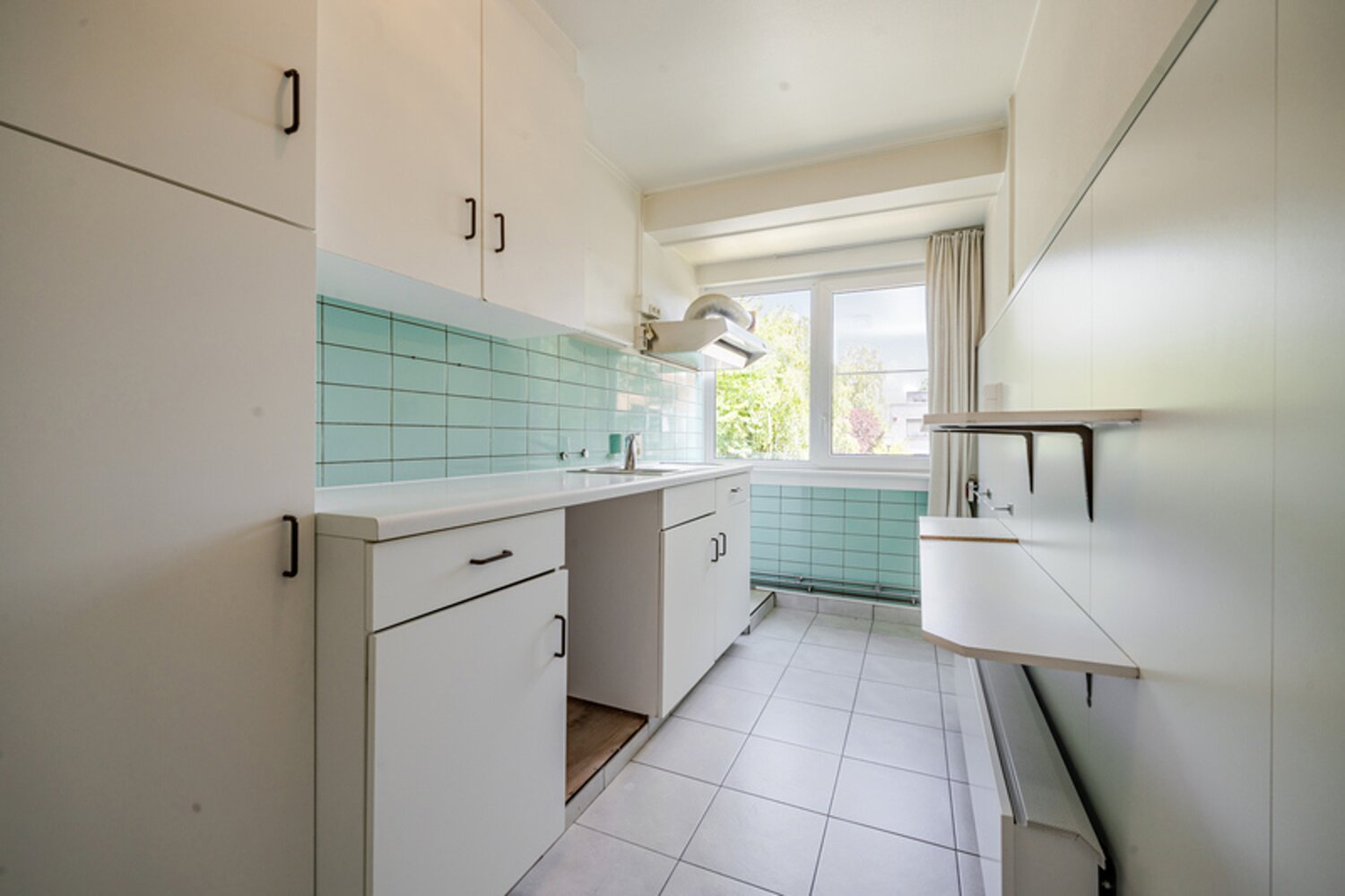 Het appartement bevindt zich in een rustige residentie en is de perfecte basis voor wie zijn eigen stempel wil drukken. Hoewel het interieur renovatie vereist, biedt dit net de kans om alles volledig naar eigen smaak en stijl te vernieuwen.