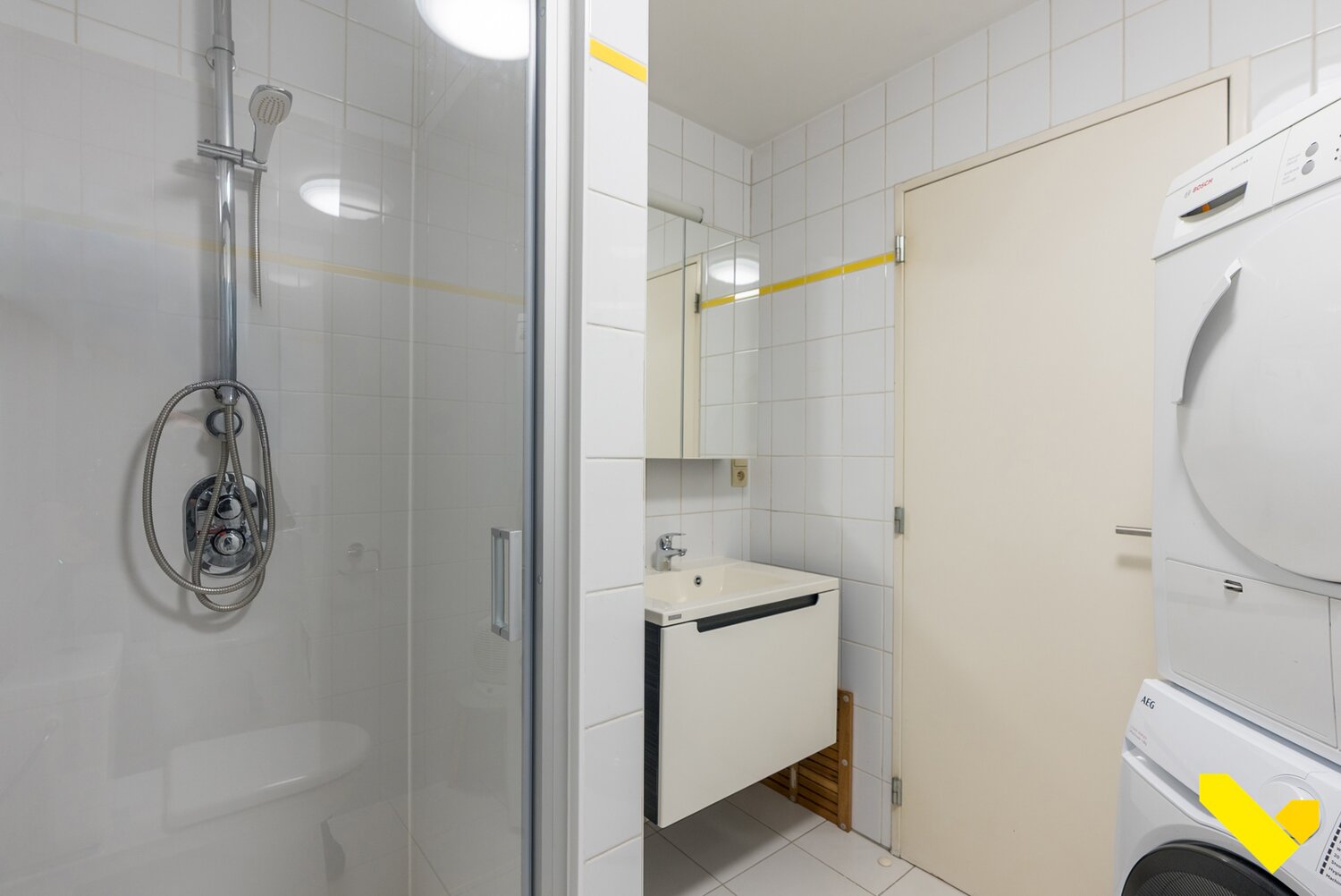 - Badkamer met douche en wastafel