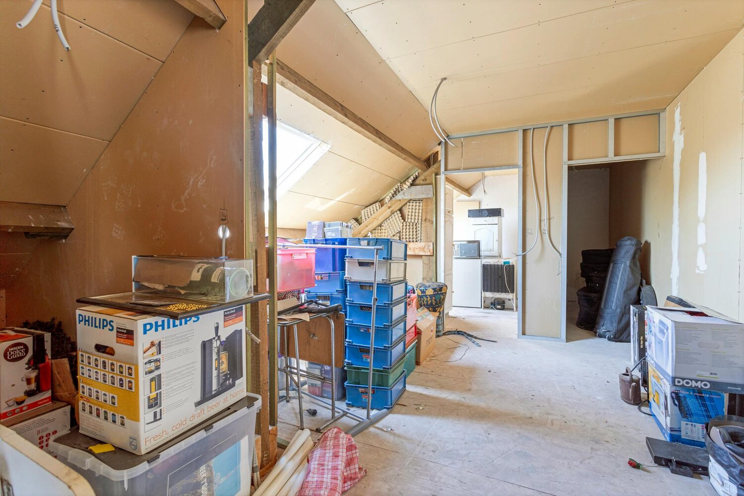 Plancher encore à aménager, déjà équipé d'un matériau isolant.