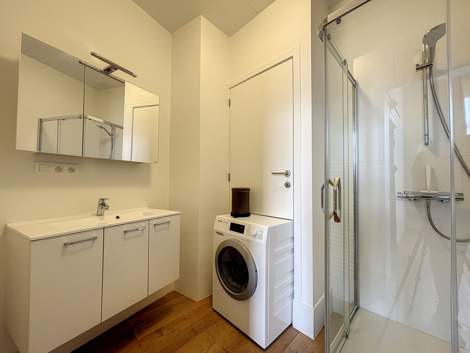 Par l’impressionnant hall d’entrée de l’immeuble, vous pouvez accéder à l’appartement au premier étage. L’appartement est en excellent état. Vous entrez dans l’appartement par le hall d’entrée qui vous donne accès au salon spacieux qui dispose de grandes fenêtres. Dans le salon, il y a aussi la cuisine ouverte entièrement équipée. De l’autre côté de l’entrée se trouve la chambre, suivie de la salle de bain, qui est équipée d’une grande douche et d’un lavabo avec des meubles d’accompagnement. Il y a aussi une connexion pour la machine à laver dans la salle de bain.
