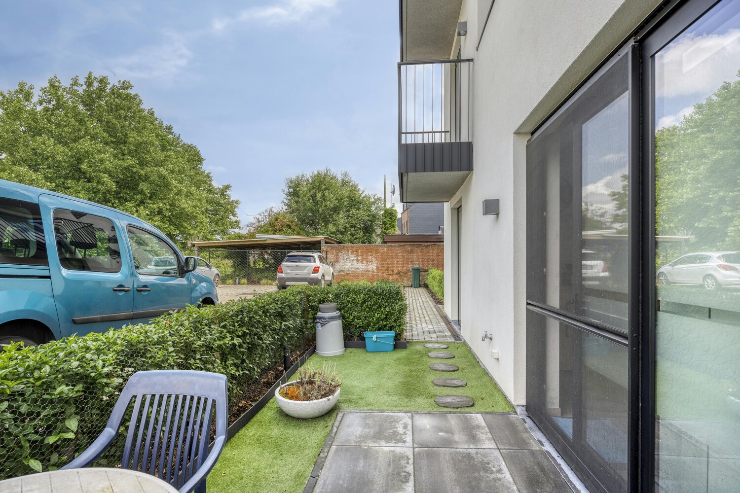 Terrasse et jardin paysagers. Place de parking adjacente au jardin. Idéal comme investissement !