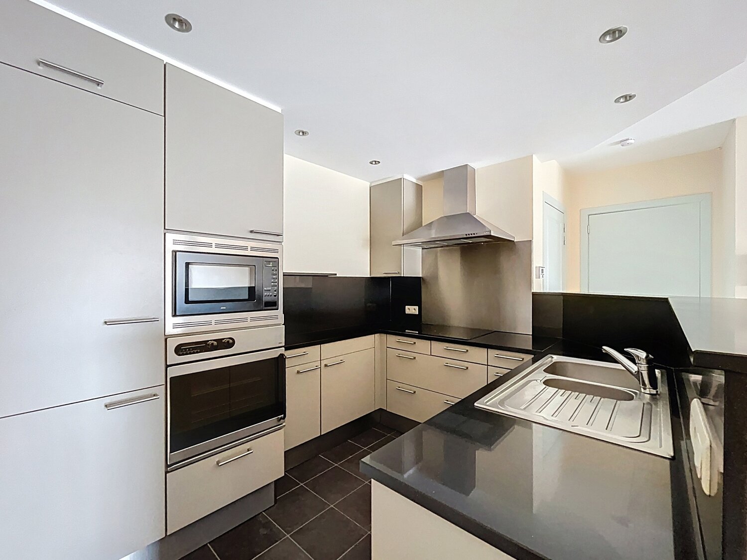 La cuisine ouverte avec son débarras pratique s'y raccorde parfaitement et forme, avec le salon, le cœur convivial de l'appartement.