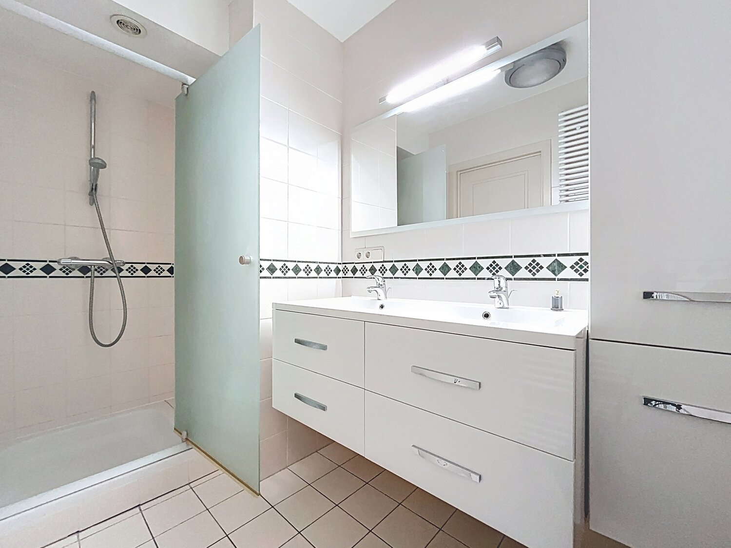 L'appartement dispose également de toilettes pour invités, d'une chambre et d'une salle de bains avec douche et double lavabo.