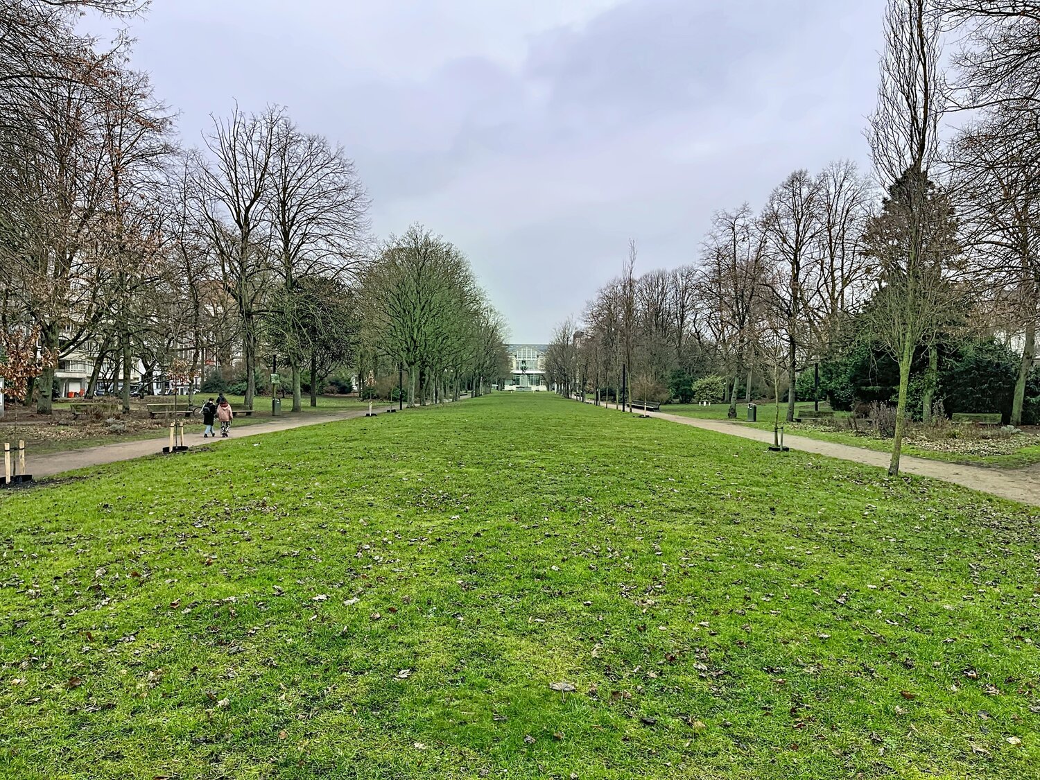 Le salon et la chambre à coucher donnent accès à la terrasse, d'où vous pouvez profiter de la vue sur le parc verdoyant.