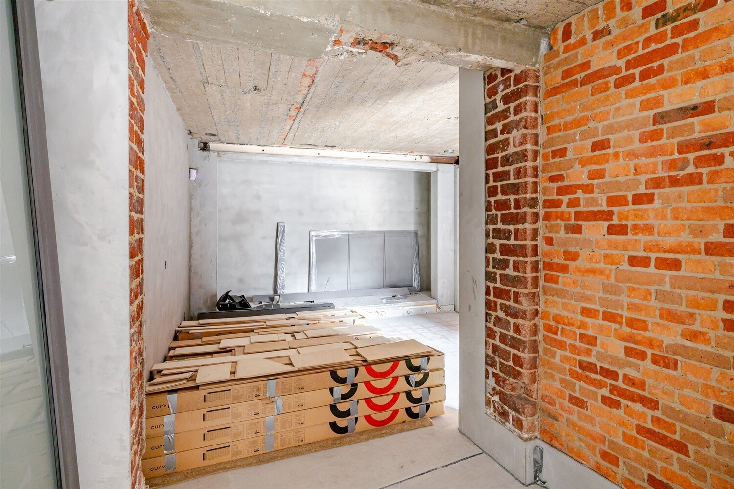 De tuin vormt een rustige en private buitenruimte die perfect aansluit bij het open en creatieve karakter van het pand. Achteraan op het perceel bevindt zich een ruime garage of magazijn van 200 m² dat zich uitstekend leent voor stockage, professionele activiteiten of een atelier. Aan de straatzijde is er een etalage tegenover het OLV-ziekenhuis, die een uitzonderlijke zichtlocatie biedt voor publiciteit of verhuur.