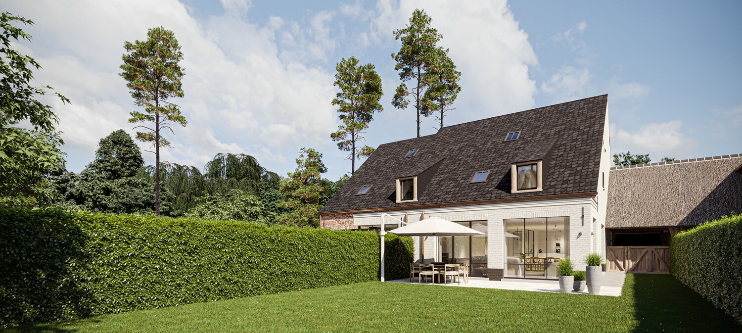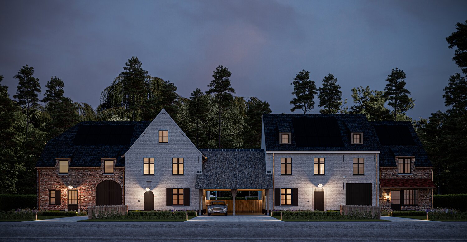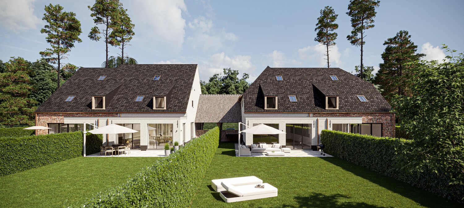 Le projet « FOUR » consiste en quatre maisons jumelées entourées d'un paysage rustique. Chaque propriété offre un style de vie luxueux avec trois chambres, deux salles de bains et un escalier fixe donnant accès au grenier. Les villas sont situées dans une rue calme et sans issue - Viergemede - à Destelbergen, au milieu d'un quartier boisé à la lisière du Bommels.
