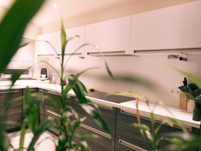 De ruime keuken sluit hier naadloos op aan en biedt voldoende plaats voor wie graag kookt of samenkomt. Via de keuken is er toegang tot een zonnig terras van ca. 15 m², waar het heerlijk vertoeven is.